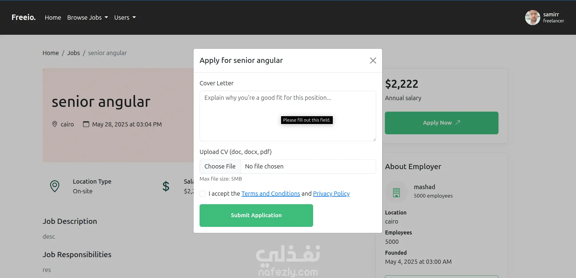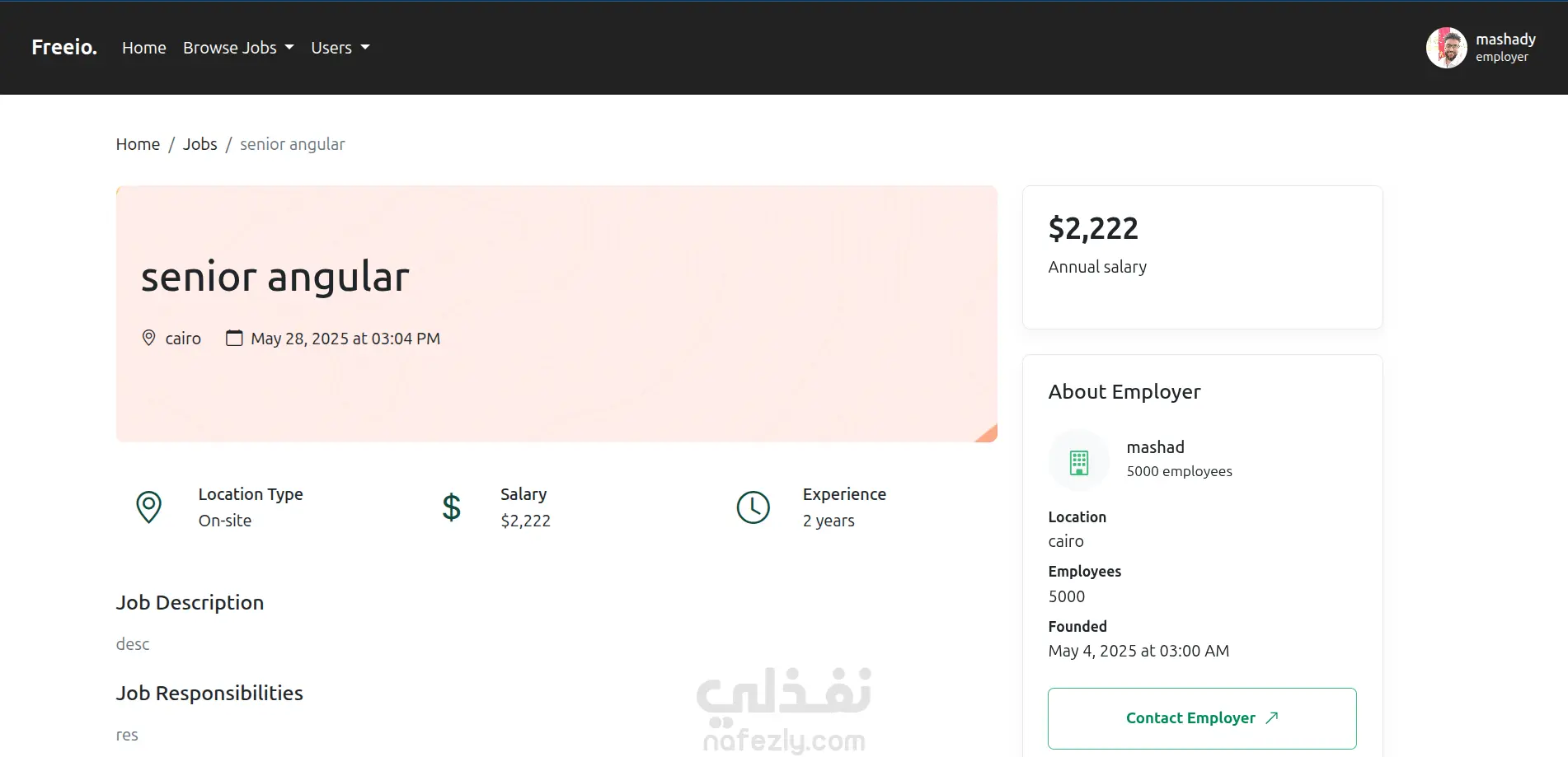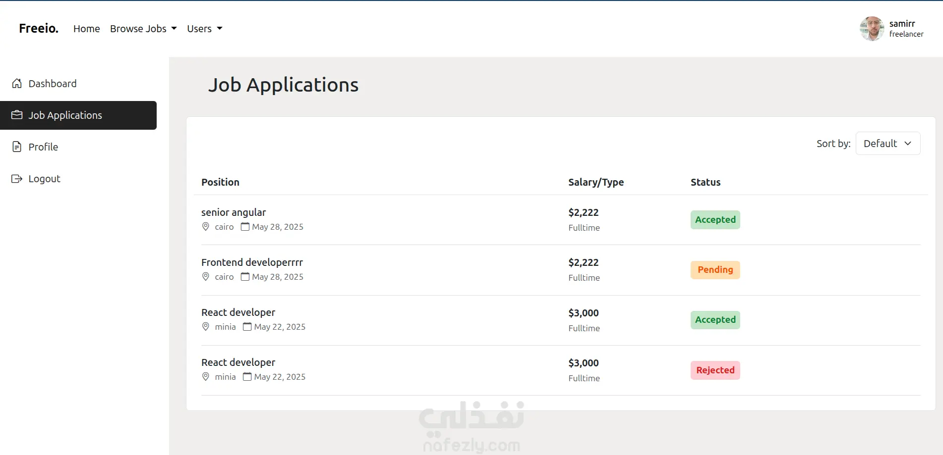 Freeio - job board and freelance platform project - full stack laravel and vuejs. A platform connecting freelancers with clients. Users can register as either freelancers or employers, post jobs or projects, and apply. Includes dashboards tailored for each user role. Freeio - مشروع منصة وظائف والعمل الحر (Laravel & Vue.js) منصة متكاملة تربط بين المستقلين والعملاء. يمكن للمستخدمين التسجيل كمستقلين أو كأصحاب عمل، ونشر وظائف أو مشاريع، والتقديم عليها. تتضمن المنصة لوحات تحكم مخصصة لكل نوع من المستخدمين بحسب دوره.