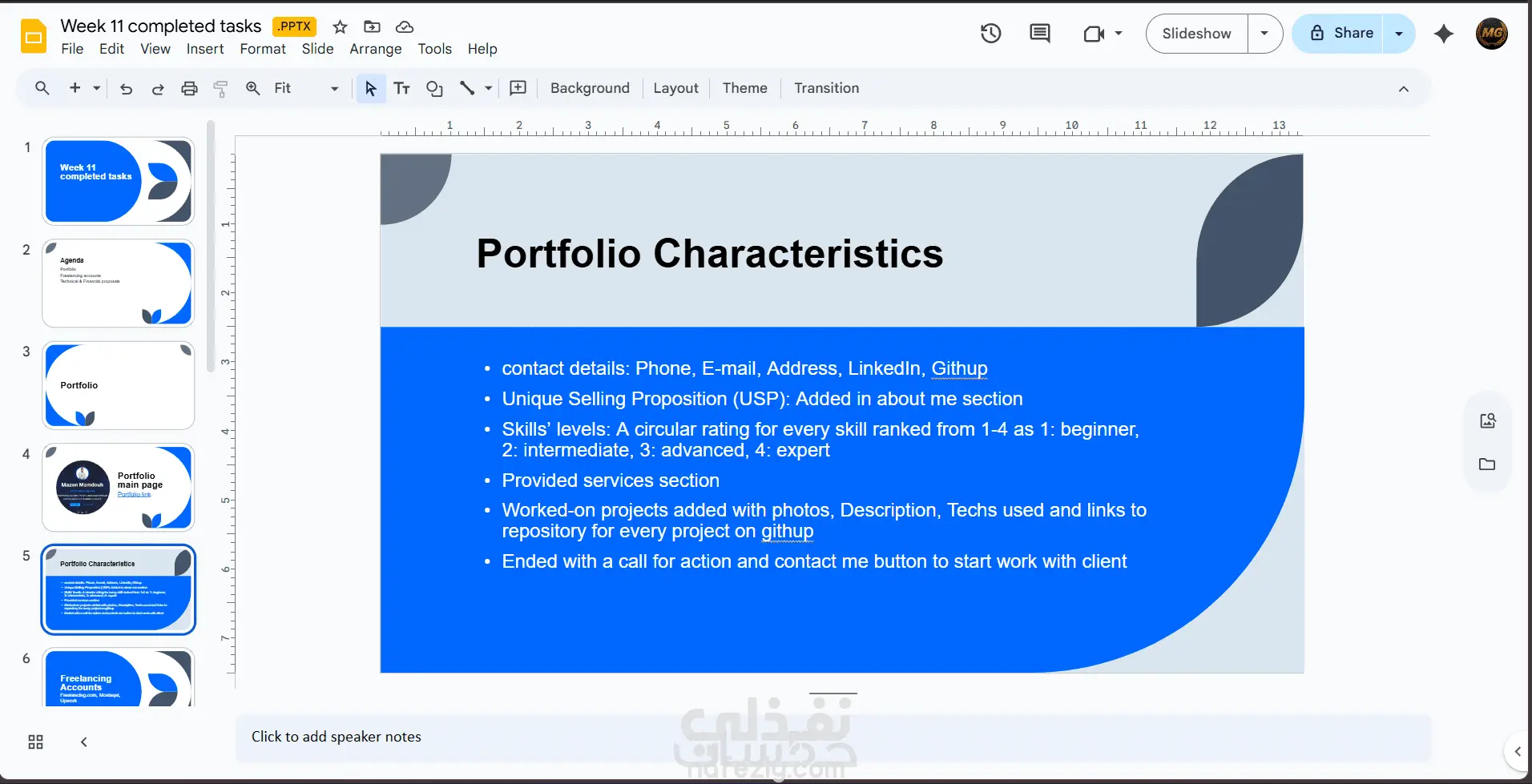 تفاصيل بعض شرائح العروض التقديمية والأنشطة الطلابية التي شاركت بها خلال دراستي الجامعية، وتشمل تصميم شرائح PowerPoint وكتابة وصياغة محتوى وإدارة التنظيم. العمل يبرز مهاراتي في التصميم وإعداد المحتوى وتقديم الأفكار بشكل إبداعي.