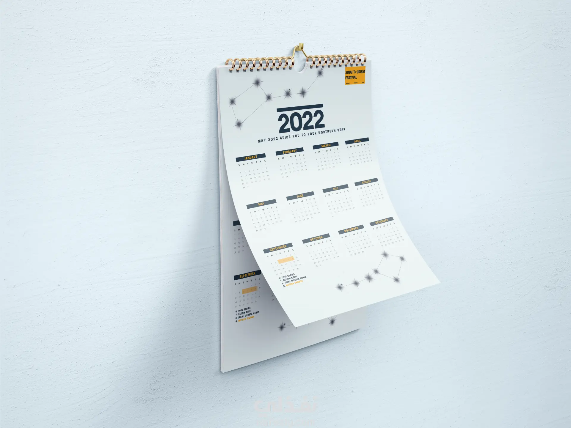 مع تقويم سنوي، يتضمن كوكبتي "الدب الأصغر" و"الدب الأكبر"، واللتين تُستخدمان عادةً لتحديد المسار.