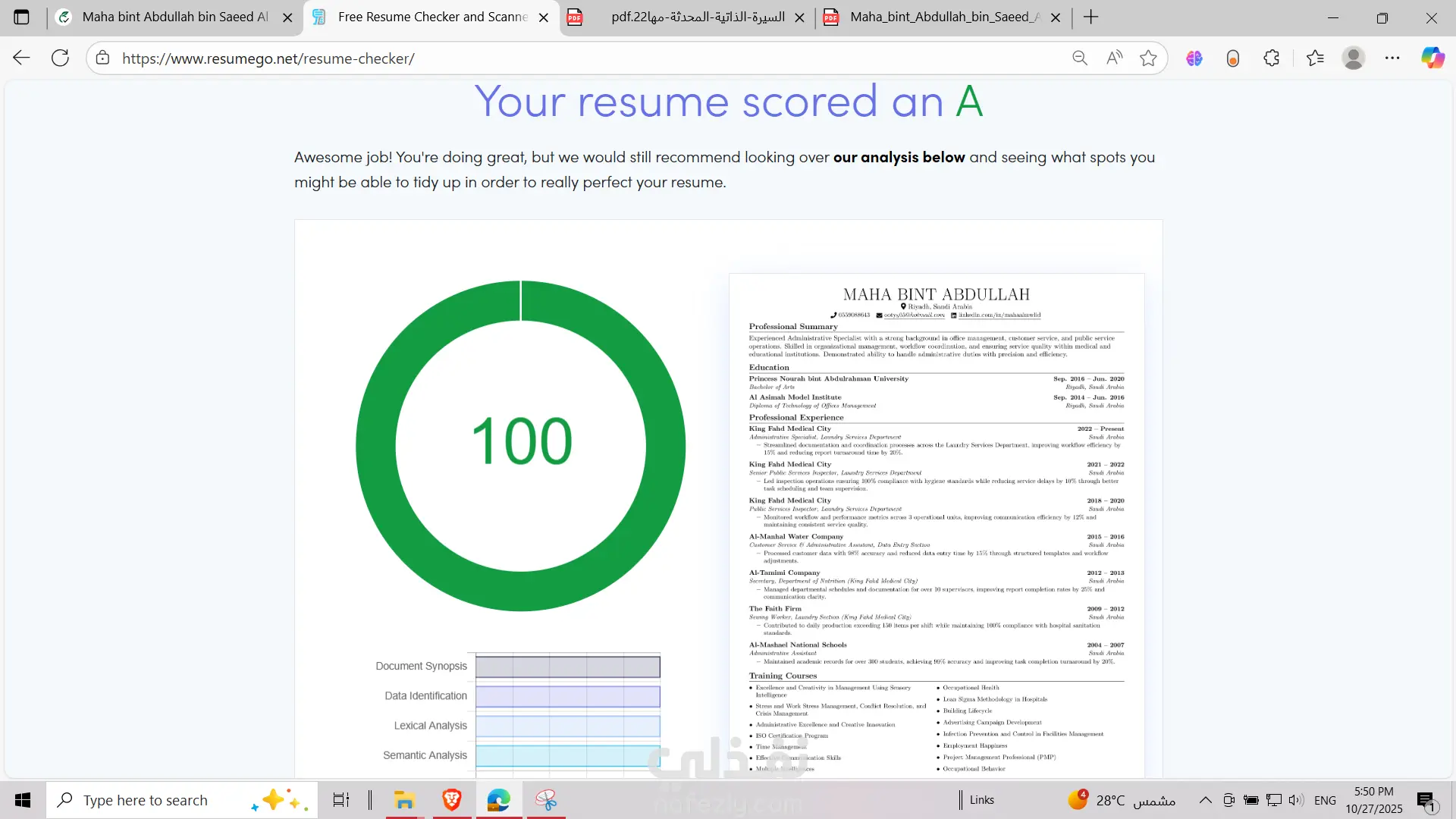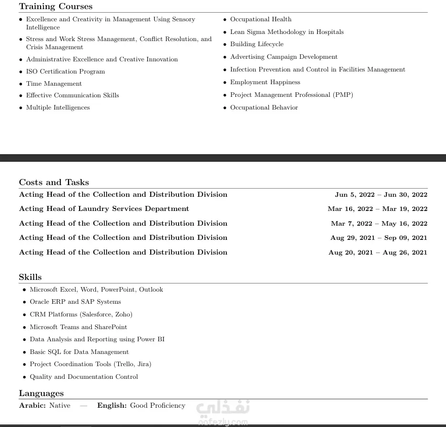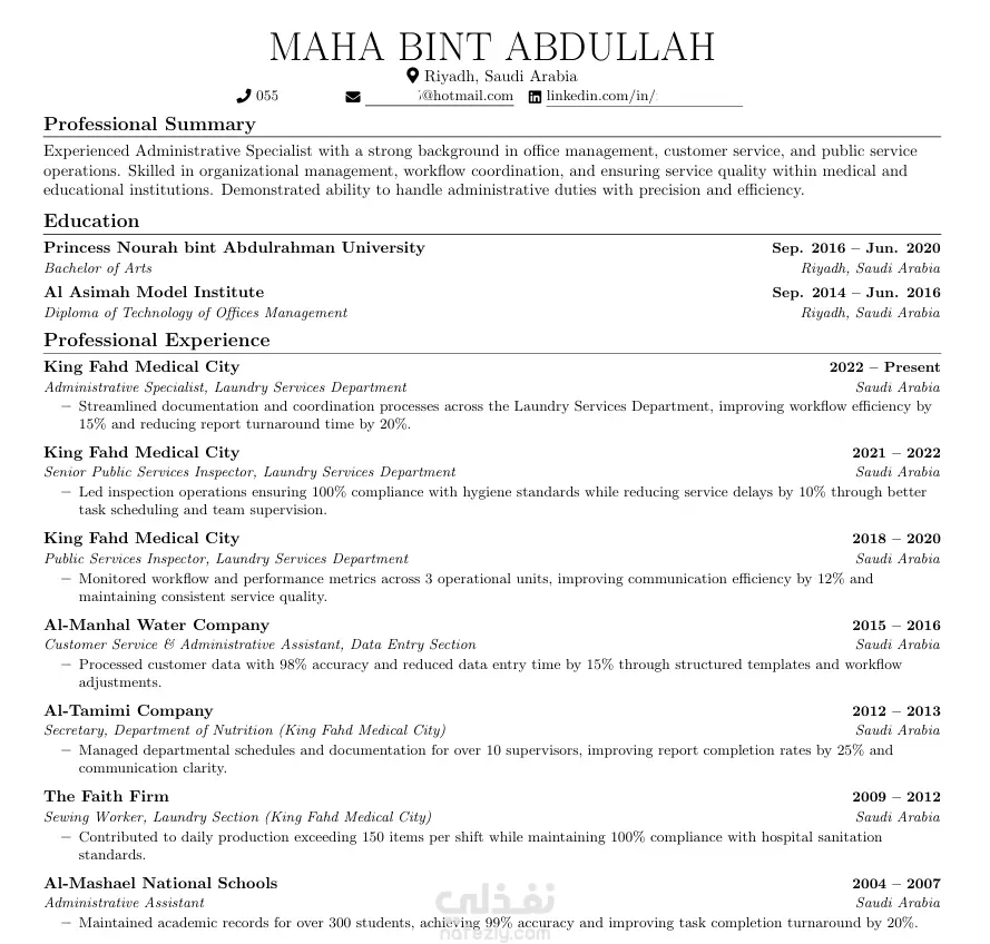 إعداد سيرة ذاتية متوافقة مع ال ATS بالعربية والإنجليزية لعميلة سعودية