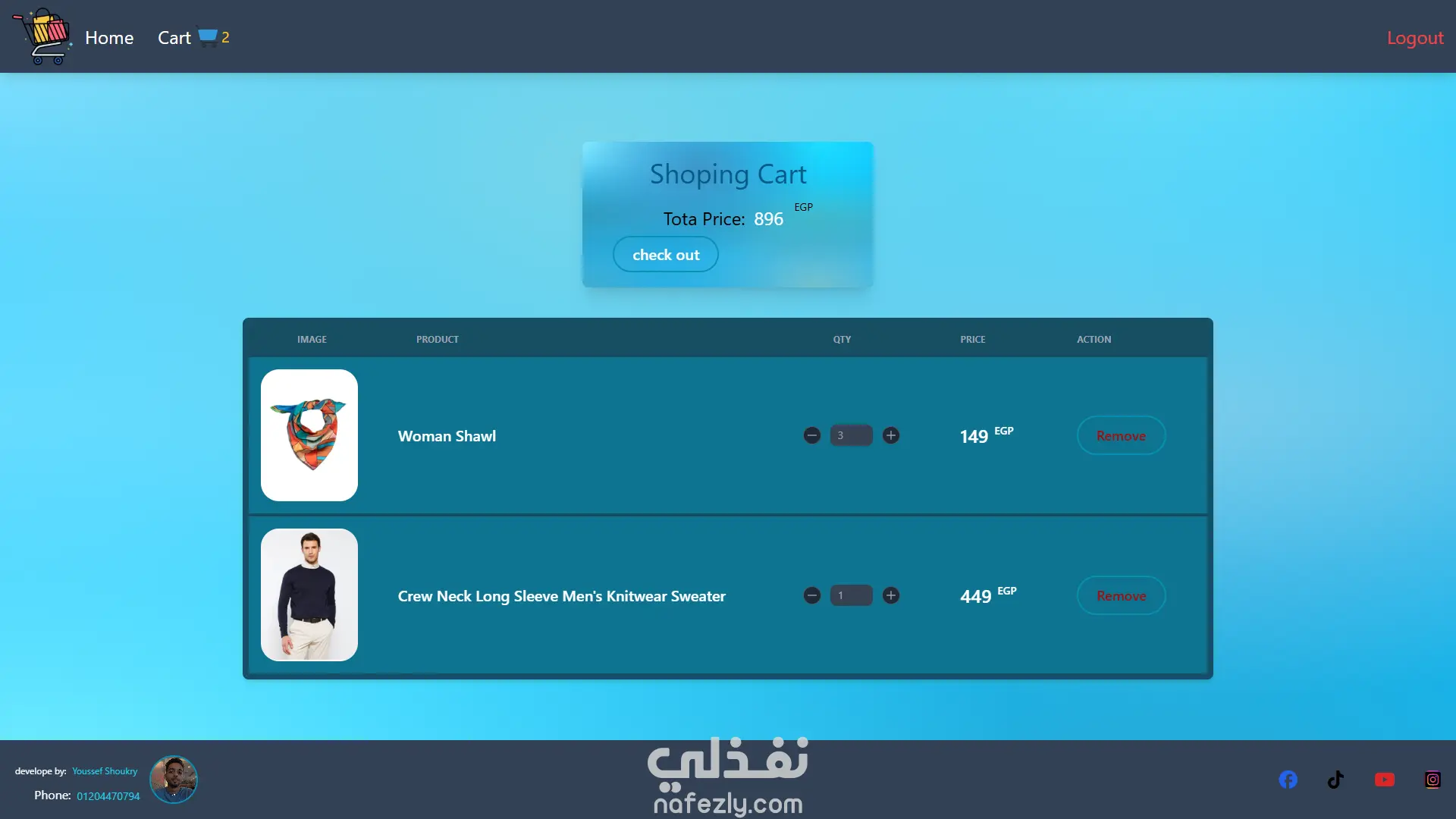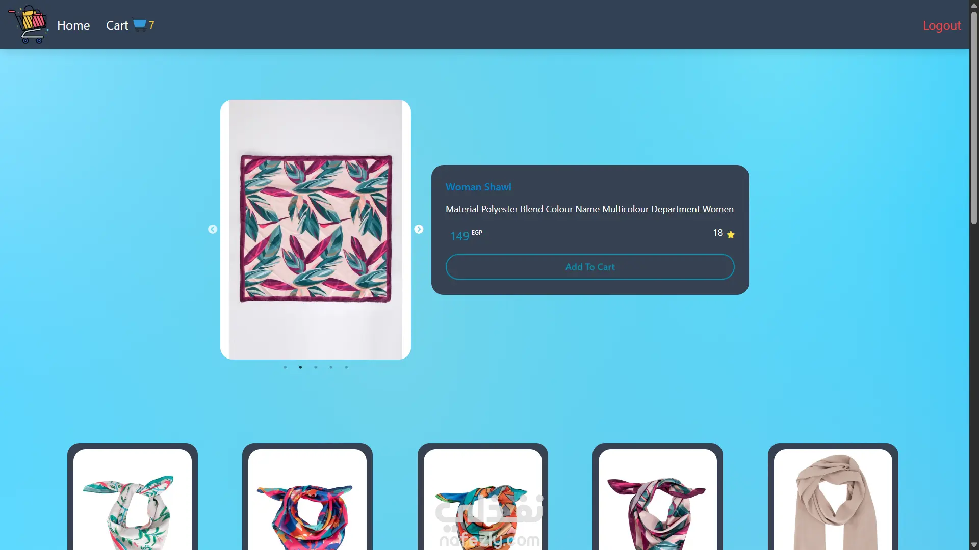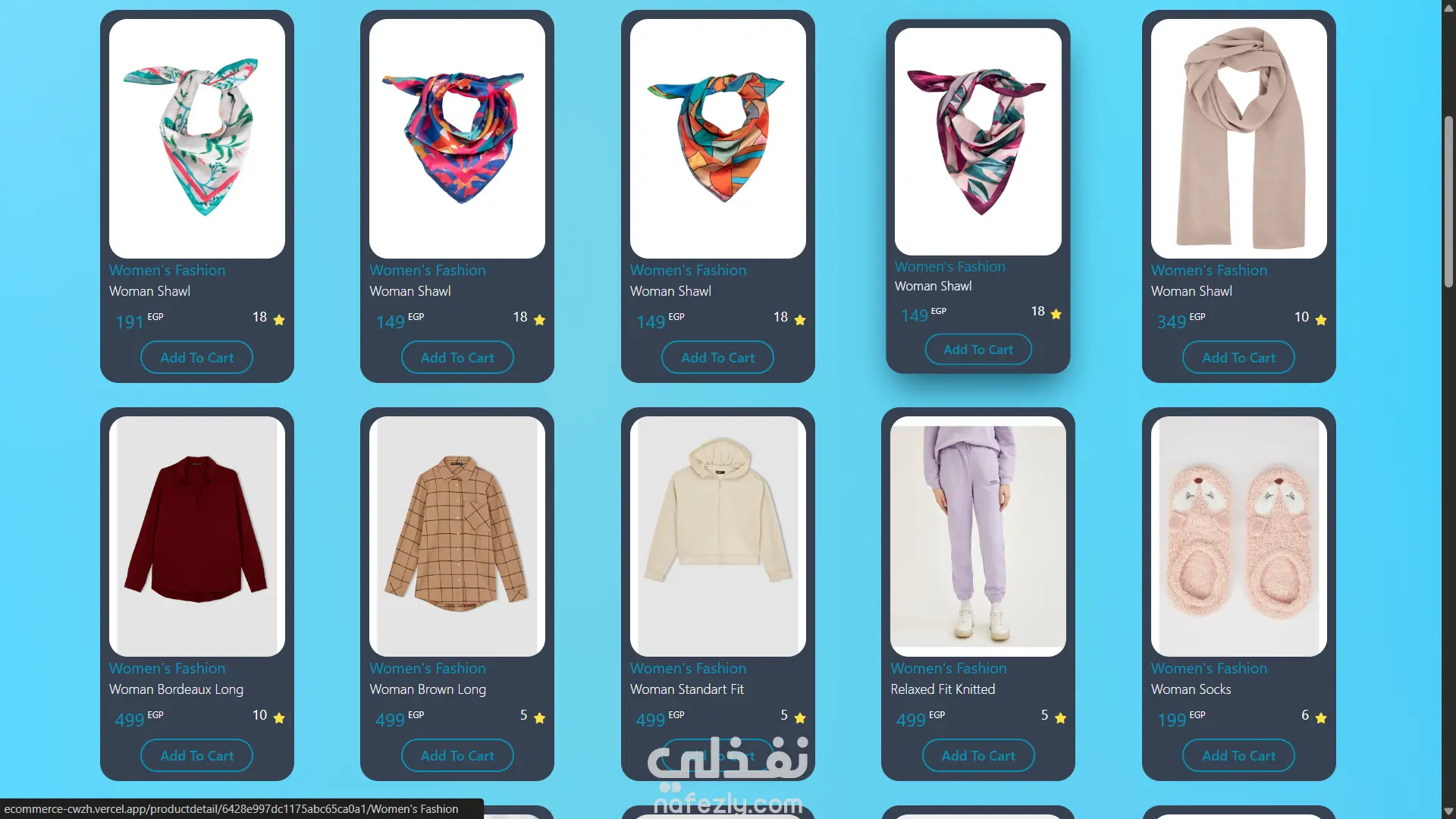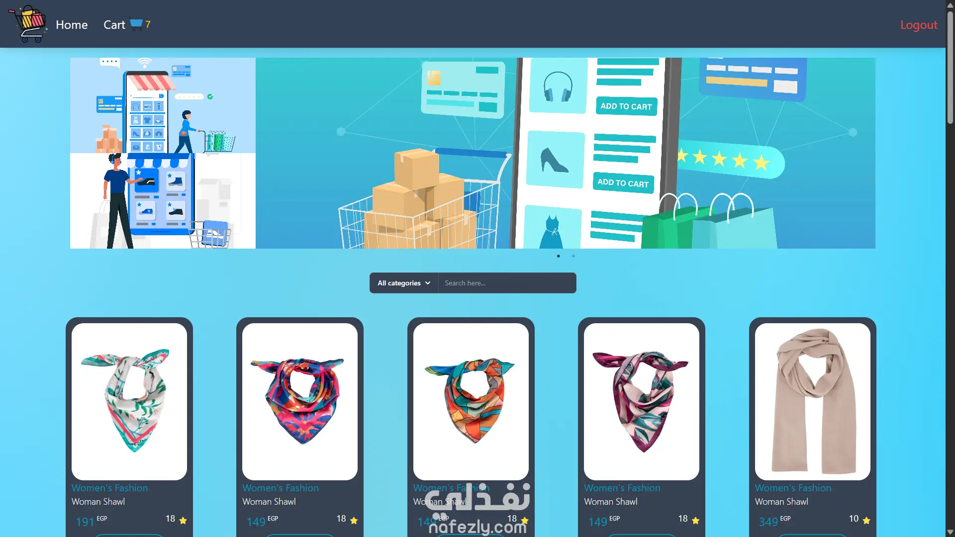 An online store interface featuring products, categories, and cart management. Technologies: React.js, TailwindCss, Context API, Vercel ,TanstackQuery Features: Product browsing, cart functionality, and dynamic product details.