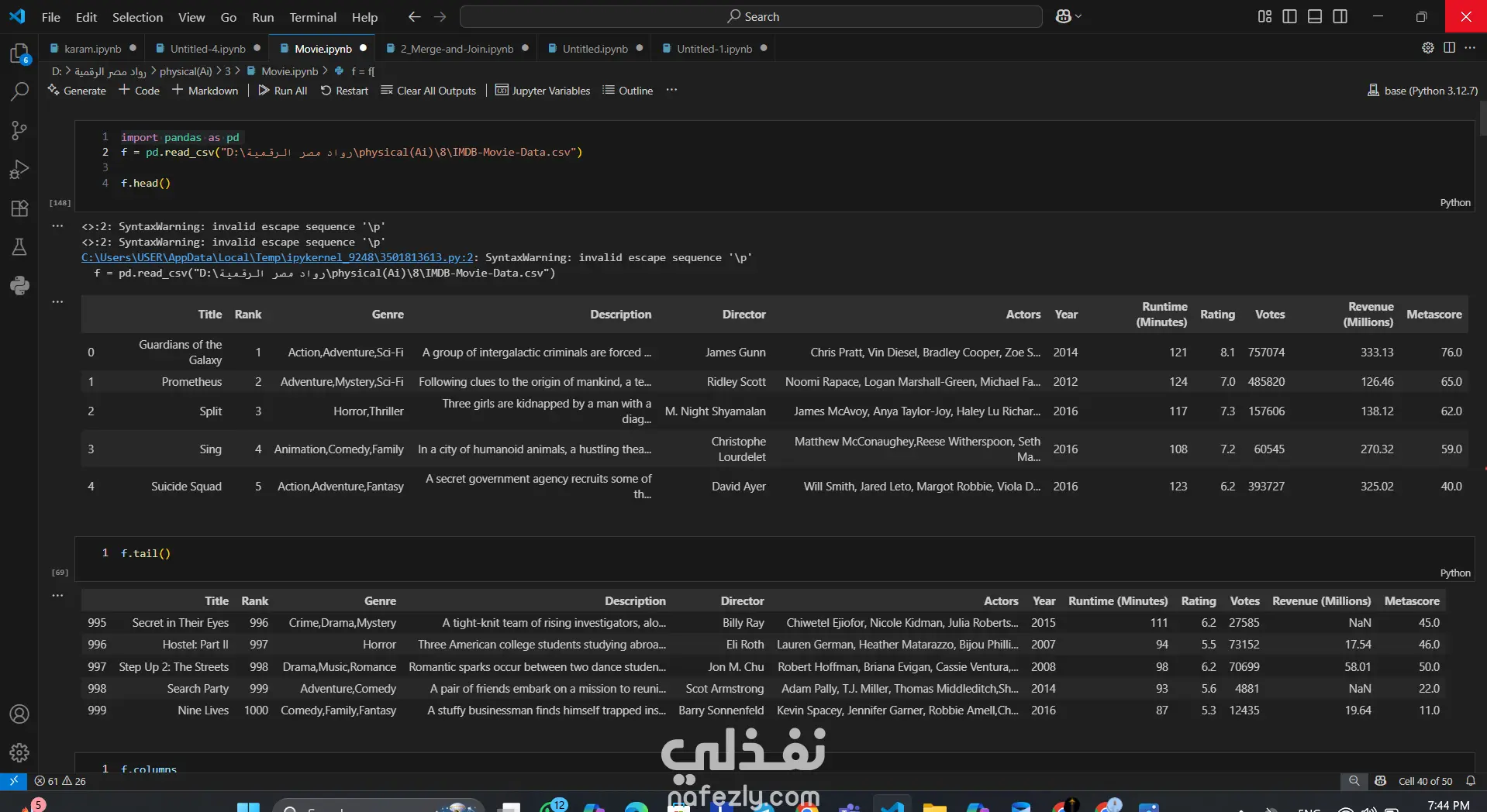 تحليل بيانات أفلام باستخدام Python وملف CSV