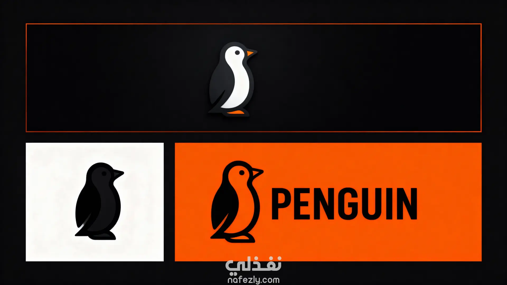بدأت مراحل التصميم بتبسيط شكل البطريق إلى أيقونة هندسية مجردة، تتكون من خطوط نظيفة ومنحنية توازن بين الحيوية والدقة. تم اختيار خط Sans Serif عصري للحروف ليمنح الكلمة طابعًا متماسكًا وسهل القراءة على جميع الاستخدامات — من التيشيرتات إلى التغليف.