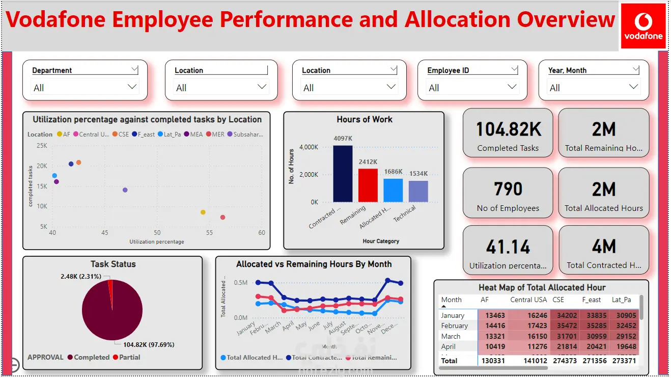 تحليل أداء الموظفين وتكاليف الموارد البشرية لشركة فودافون للاتصالات عبر مختلف المناطق بهدف تحسين عملية اتخاذ القرار ورفع كفاءة العمليات التشغيلية.