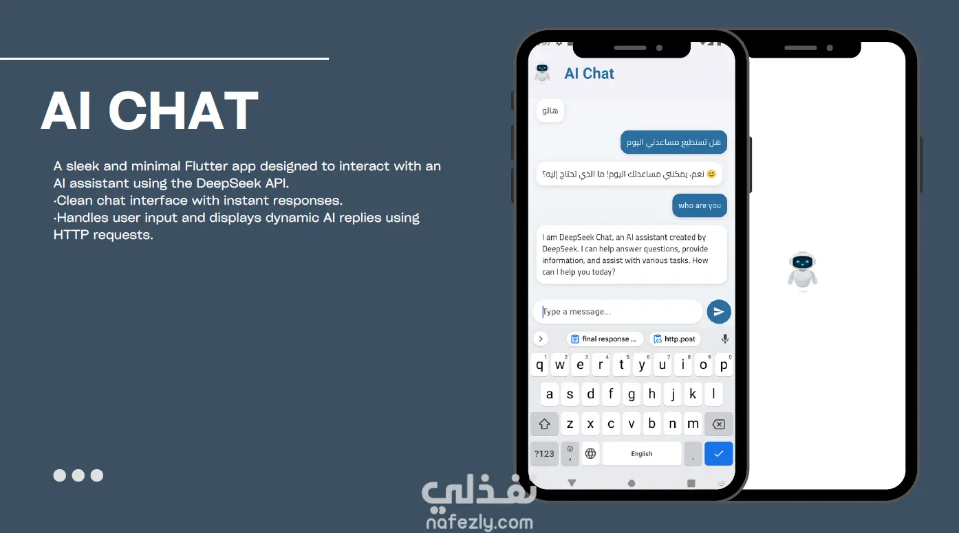 التقنيات المستخدمة: Flutter، HTTP، DeepSeek API