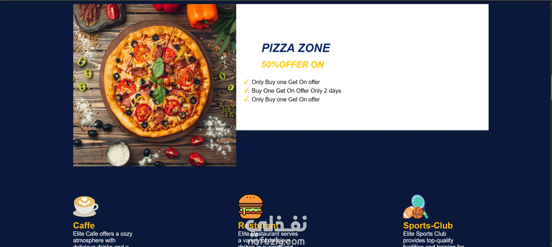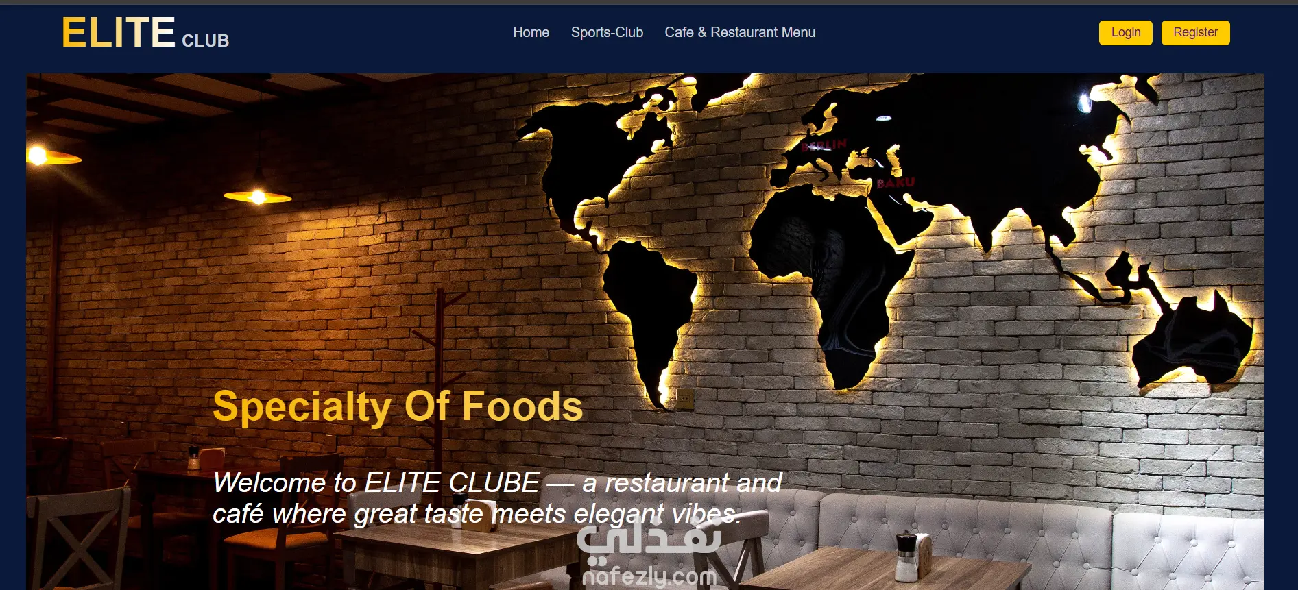 تم تصميم وتطوير صفحة هبوط احترافية لنادي متكامل يضم مطعمًا، كافيه، وصالة ألعاب رياضية.