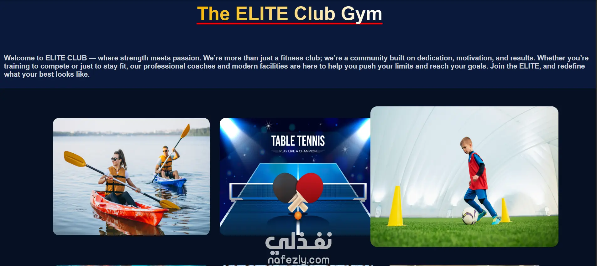 تهدف الصفحة إلى عرض خدمات النادي بشكل جذاب وسلس مع إبراز المميزات والعروض وتشجيع الزوار على الحجز أو التواصل.
