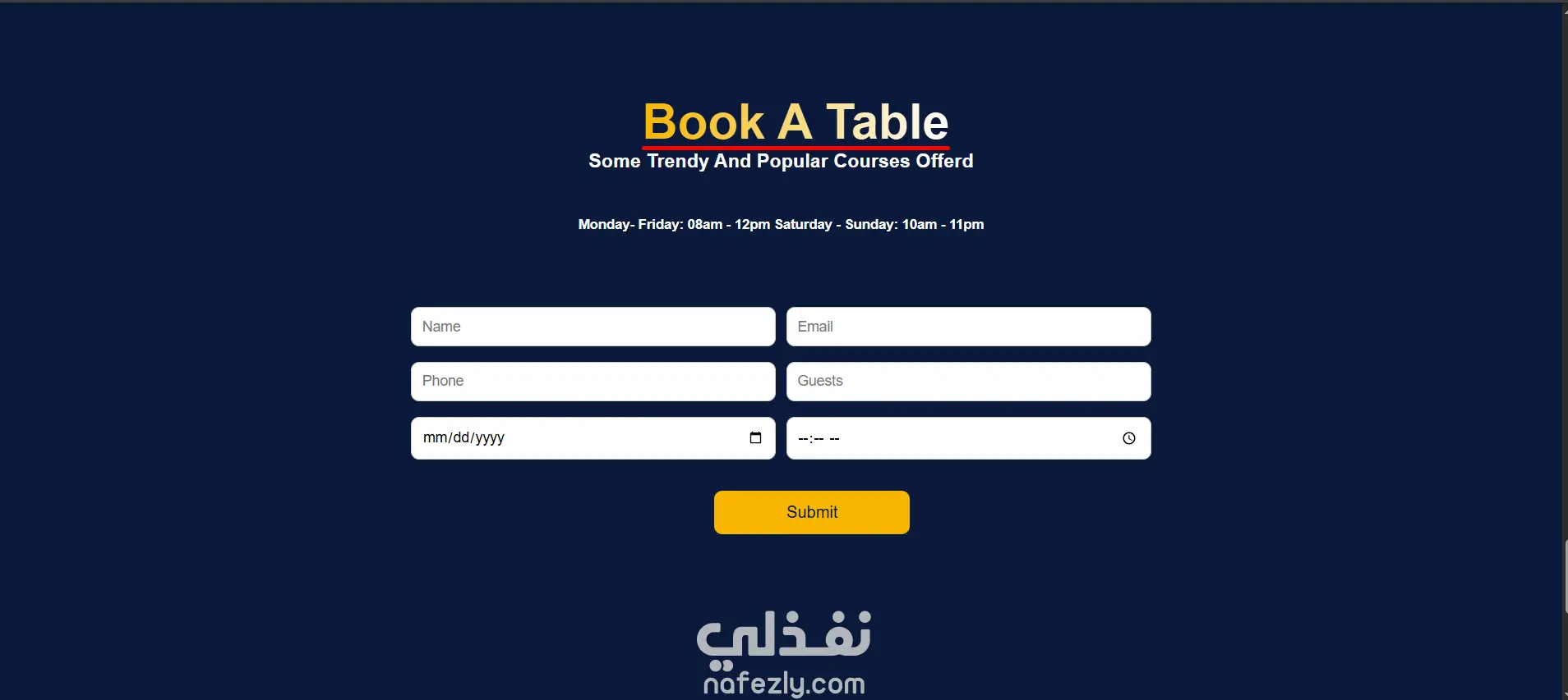 تم تنفيذ التصميم باستخدام HTML، CSS، وJavaScript لضمان تجربة مستخدم مريحة واستجابة كاملة على جميع الأجهزة.