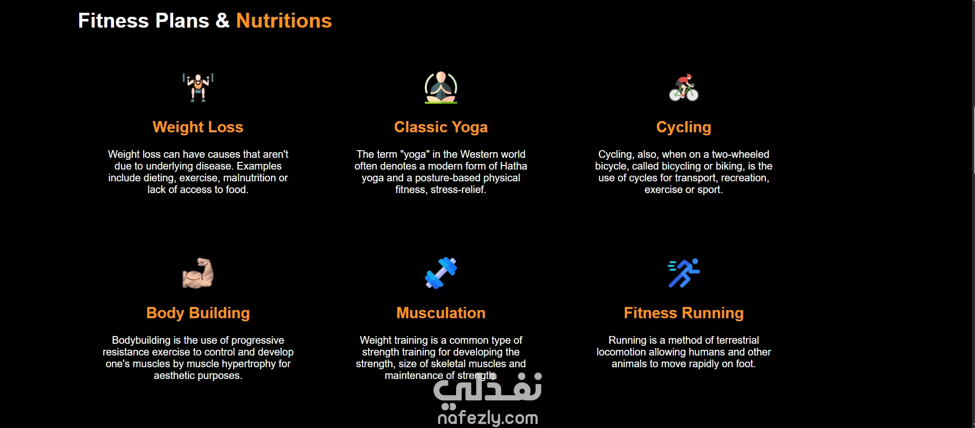 تعتمد الصفحة على تصميم عصري وحيوي يعكس طابع اللياقة والنشاط، مع استخدام HTML، CSS، وJavaScript لتوفير تجربة تفاعلية وسلسة على جميع الأجهزة.