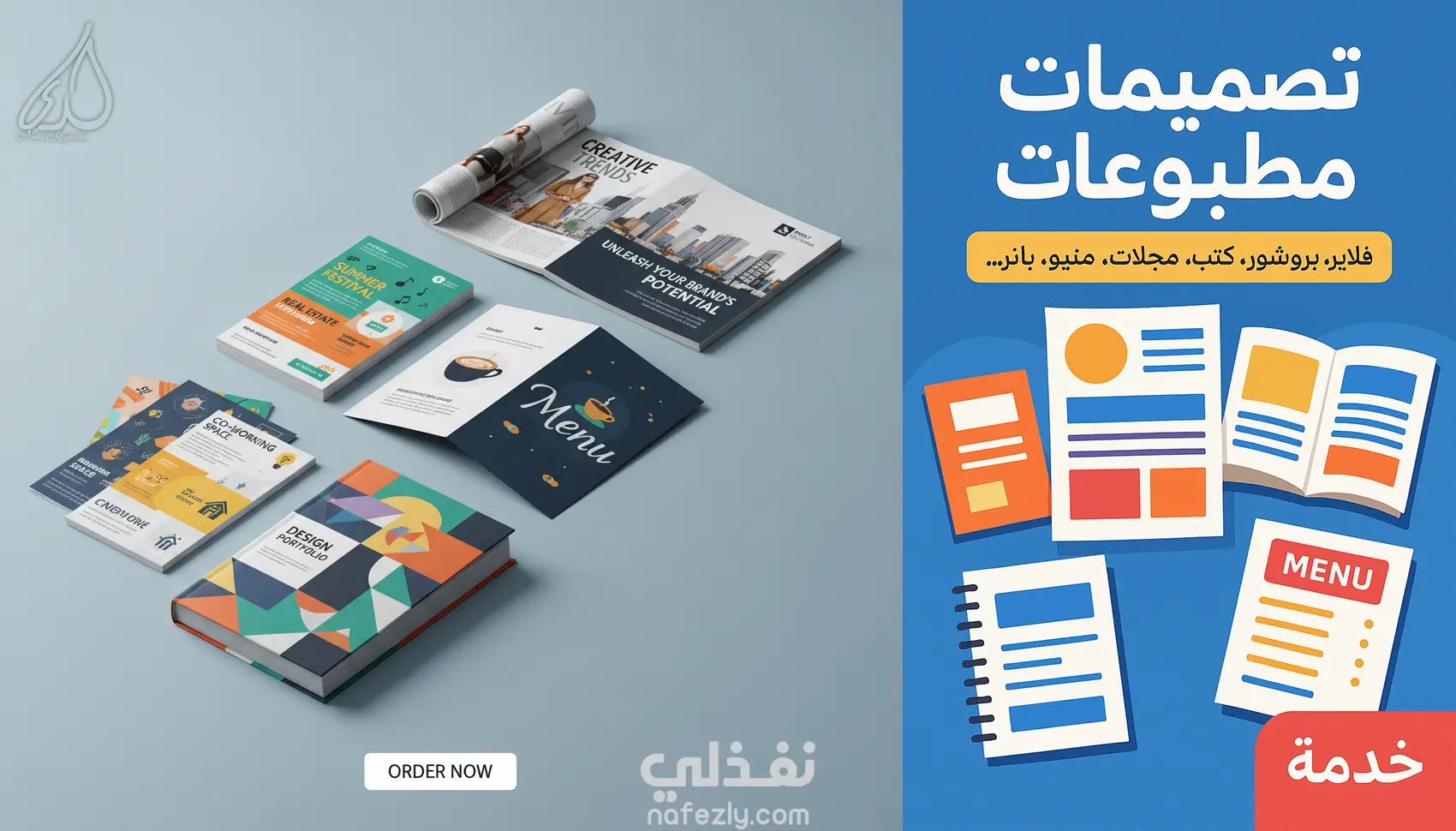تصميم مطبوعات (فلاير، بروشور، كتب، مجلات،منيو، بانر ...الخ)