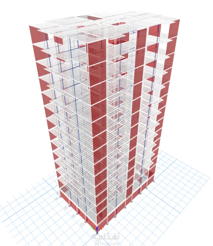 تصميم انشائي لبرج سكني 14 طابق باستخدام ETABS ,SAFE, AutoCAD