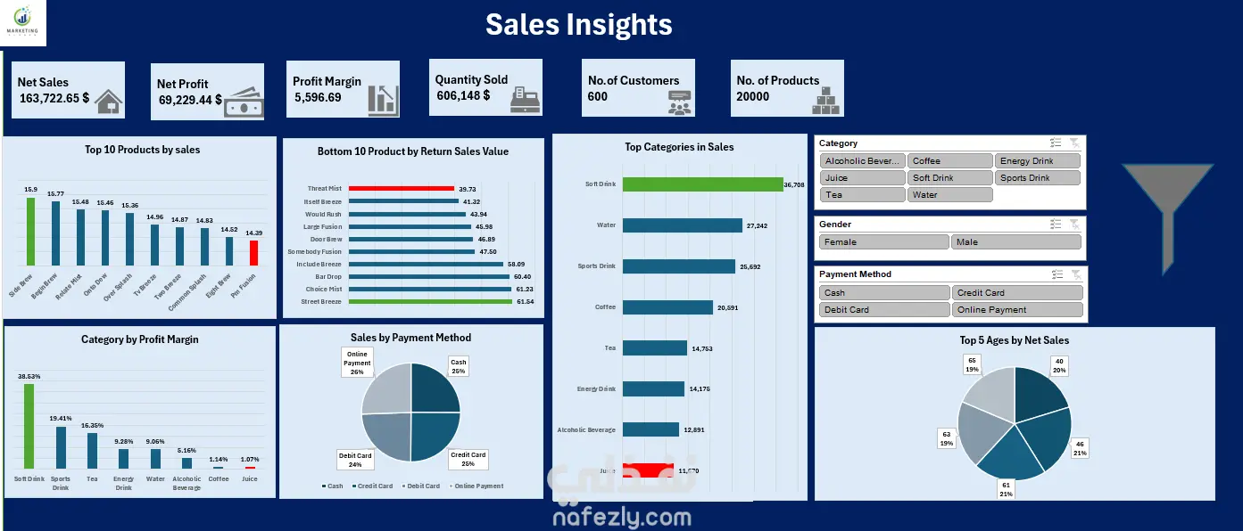 قمت بتطوير **لوحة تحكم تحليلية** باستخدام **Excel** مع أدوات **Power Query** و**Power Pivot** لتحويل البيانات الخام إلى معلومات واضحة وقابلة للتنفيذ.