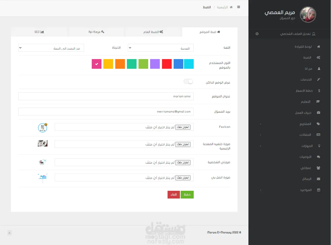 سيرة ذاتية مميزة مع لوحة تحكم سهلة الاستخدام لتغير جميع التفاصيل تدعم تحكم في اللوان الموقع و يدعم اللغتين العربية والانجليزية cv & dashboard تم برمجتها بلغة php