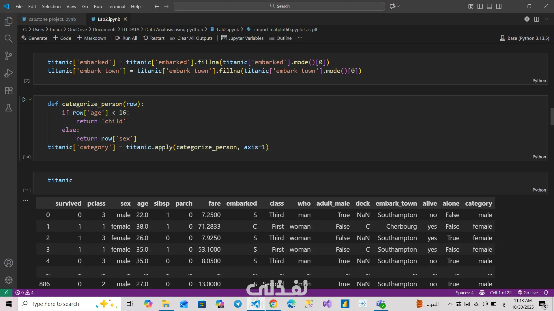 تحليل توزيع أعمار ركّاب سفينة تايتانيك باستخدام بايثون ( Titanic Passenger Age Distribution Analysis using Python)