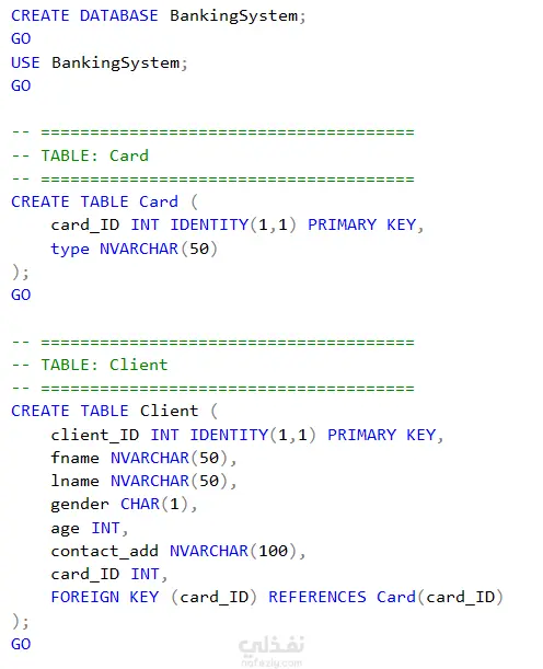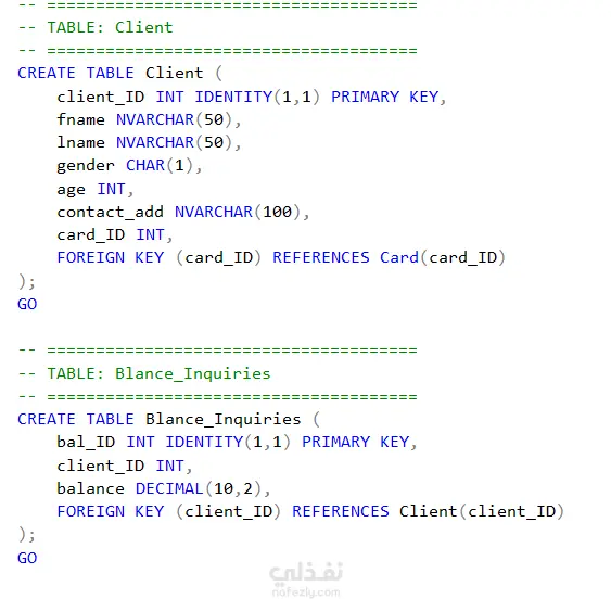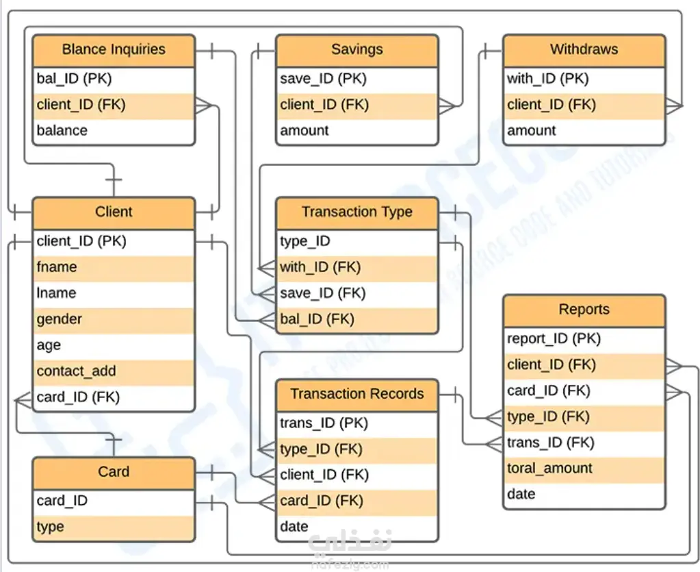 وصف مشروع نظام الـ ATM System (باستخدام SQL Server + ERD + System Analysis) تم تنفيذ المشروع بهدف تصميم وبناء نظام إدارة شامل لماكينات الصراف الآلي (ATM System) باستخدام Microsoft SQL Server لتخزين البيانات وإدارتها بشكل آمن ومنظم. يتيح النظام للعملاء إجراء العمليات البنكية الأساسية مثل السحب النقدي، الإيداع، الاستعلام عن الرصيد، تحويل الأموال، وإنشاء الحسابات الجديدة. يهدف المشروع إلى محاكاة العمليات البنكية الواقعية وتوضيح كيفية ربط البرمجة بقواعد البيانات في بيئة عملية وآمنة. قاعدة البيانات (Database Design): تم بناء قاعدة البيانات على SQL Server مع تصميم جداول تغطي جميع مكونات النظام البنكي الأساسية: Customers Table: لتخزين بيانات العملاء (الاسم، الرقم القومي، العنوان، رقم الهاتف). Accounts Table: لتخزين بيانات الحسابات المرتبطة بكل عميل (رقم الحساب، نوع الحساب، الرصيد). Cards Table: لتخزين بيانات بطاقات ATM (رقم البطاقة، الكود السري، تاريخ الانتهاء). Transactions Table: لتسجيل العمليات البنكية مثل السحب والإيداع والتحويل مع التاريخ والمبلغ. ATMMachines Table: لتخزين بيانات أجهزة الصراف (الموقع، الرصيد المتاح). تم تنظيم العلاقات كالتالي: علاقة واحد لمتعدد بين Customer وAccount. علاقة واحد لواحد بين Account وCard. علاقة واحد لمتعدد بين Account وTransactions. علاقة واحد لمتعدد بين ATMMachine وTransactions. تصميم الـ ERD: تم إعداد مخطط ERD (Entity Relationship Diagram) باستخدام أداة Lucidchart، ويوضح الكيانات الأساسية والعلاقات بينها عبر Primary وForeign Keys. يساعد المخطط على فهم البنية الكاملة للنظام وتتبع العمليات البنكية بدقة من العميل إلى الحساب ثم المعاملات وأجهزة الصراف الآلي. الكود (Implementation): تمت كتابة الكود باستخدام Structured Query Language (SQL) لإنشاء الجداول والعلاقات، مع تطبيق قيود تكامل البيانات مثل CHECK وDEFAULT وUNIQUE. كما تم إدخال بيانات تجريبية (Sample Data) لتمثيل عملاء وحسابات ومعاملات واقعية. يتضمن الكود استعلامات لتنفيذ: عرض الرصيد. تنفيذ السحب مع تحديث الرصيد وتسجيل العملية. تحويل الأموال بين الحسابات. عرض سجل العمليات لعميل معين. تحليل النظام (System Analysis): شمل التحليل النقاط التالية: الهدف: إدارة العمليات البنكية إلكترونيًا بطريقة دقيقة وآمنة. المستخدمون: العملاء، موظفو البنك، ومديرو النظام. المتطلبات الوظيفية: السحب، الإيداع، التحويل، إدارة الحسابات. المتطلبات غير الوظيفية: الأمان، السرعة، الاعتمادية، سهولة الاستخدام. مخططات التدفق (Flowcharts) وسيناريوهات الاستخدام (Use Cases) توضح طريقة تنفيذ العمليات داخل النظام. الأدوات والتقنيات: Microsoft SQL Server Lucidchart (ERD Design) Structured Query Language (SQL) Database Normalization لضمان تصميم منظم وخالٍ من التكرار نتائج المشروع: قاعدة بيانات متكاملة وقابلة للتوسع لأي نظام بنكي. تصميم ERD احترافي يوضح العلاقات بين الكيانات. توثيق وتحليل نظام شامل يسهل تطوير واجهات مستقبلية (Web أو Desktop). مشروع متكامل يجمع بين التصميم البنكي الواقعي والدقة الأكاديمية في التنفيذ.