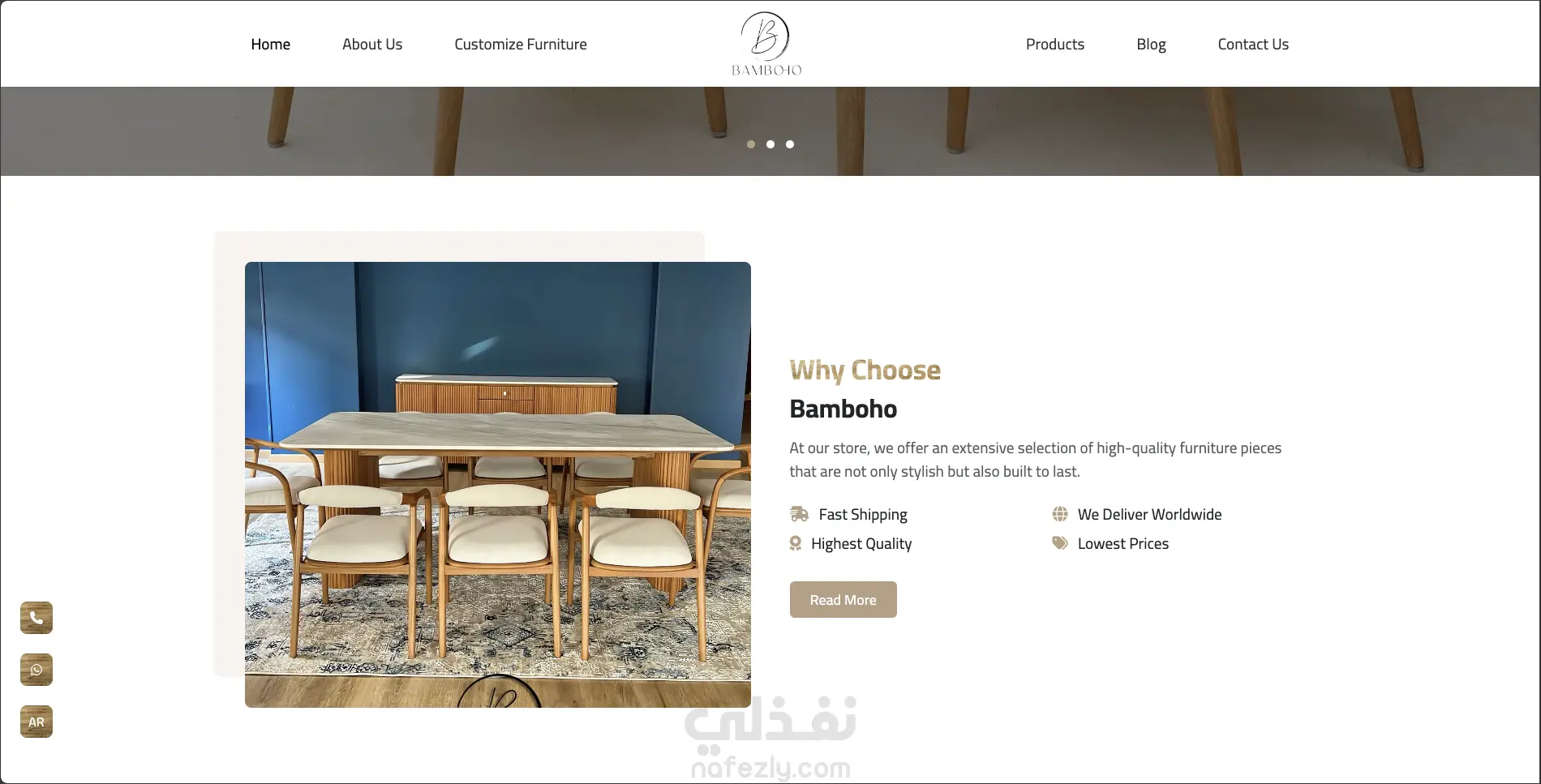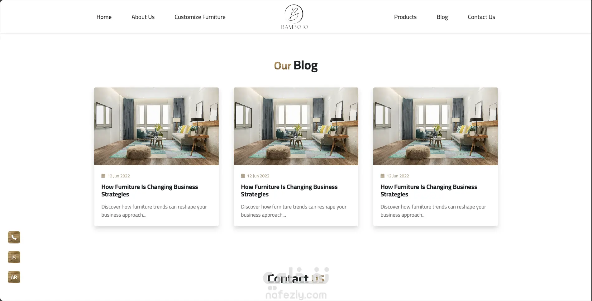 قمت بتصميم وتطوير موقع Bamboho، وهو موقع تعريفي لشركة متخصصة في تصميم وتصنيع وبيع الأثاث الخشبي الطبيعي.