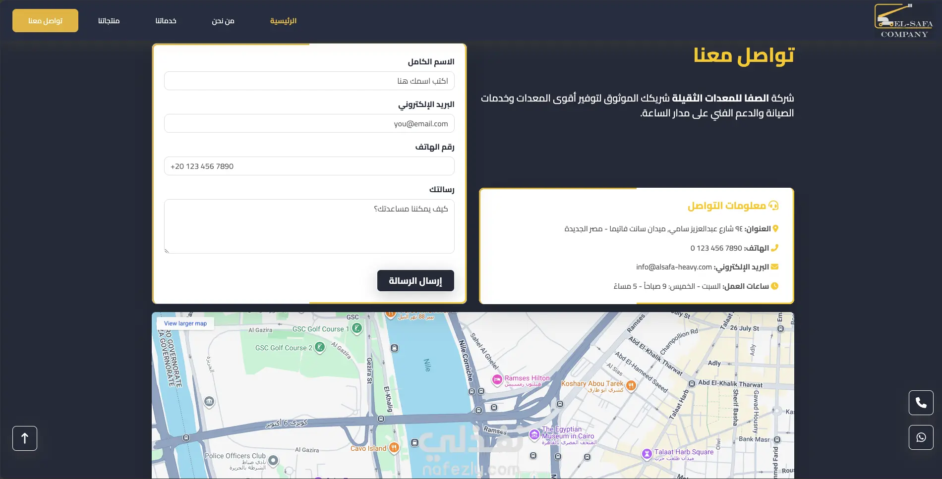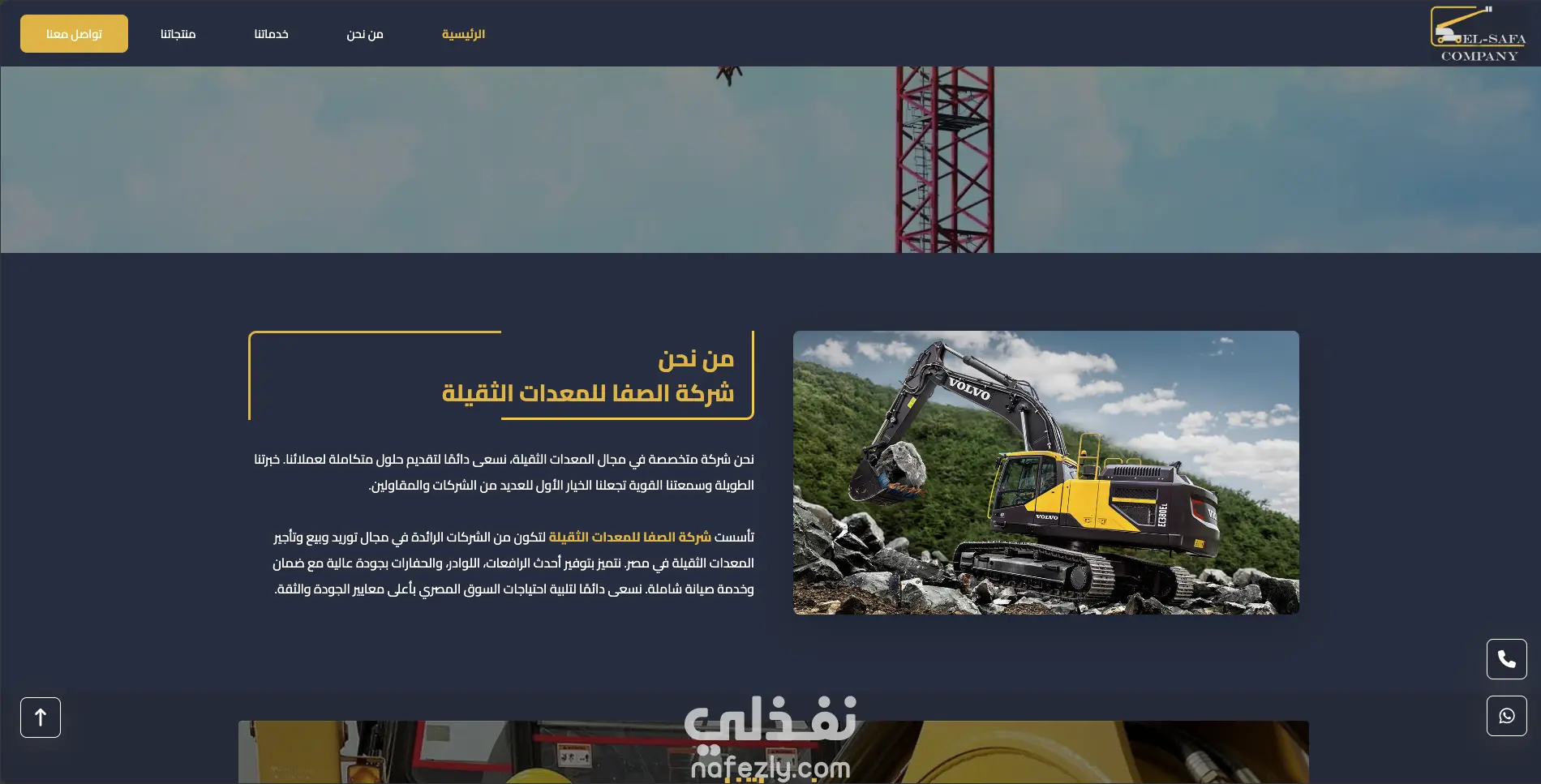 قمت بتصميم وتطوير صفحة هبوط تعريفية لشركة Elsafa للمعدات الثقيلة، تهدف إلى إبراز خدمات الشركة في مجال المعدات الثقيلة، مثل الرافعات، واللودرات، وحلول النقل الثقيل.