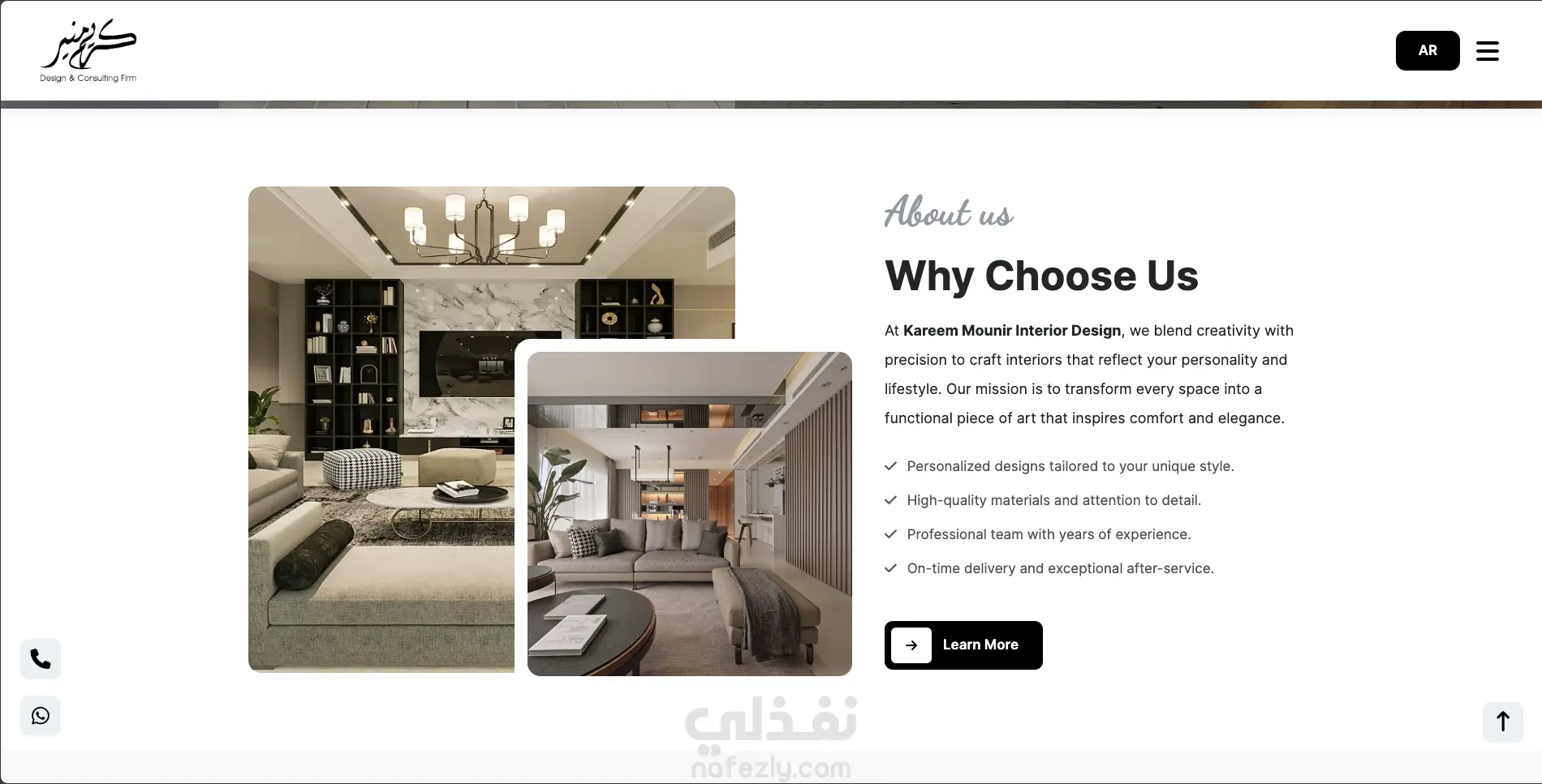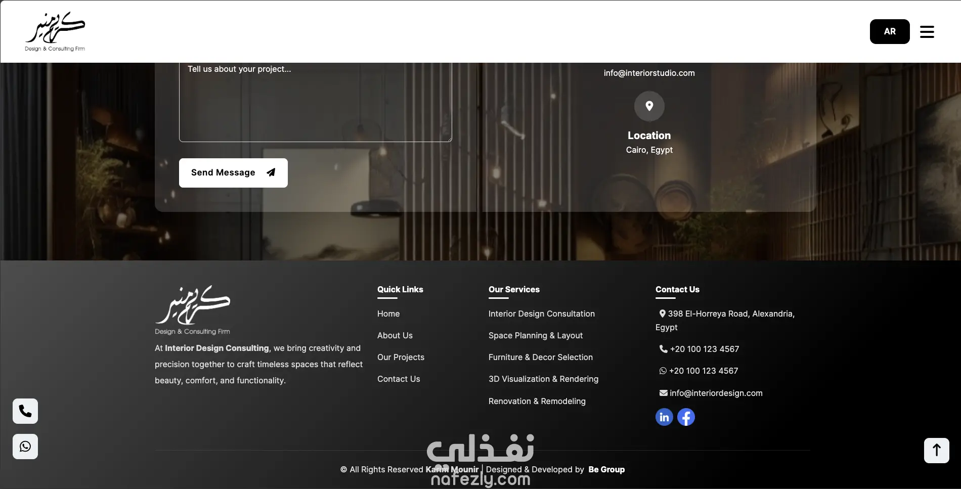 قمت بتصميم وتطوير موقع تعريفي احترافي لشركة Karim Mounir – Interior Design & Consulting، المتخصصة في التصميم الداخلي والاستشارات الهندسية.