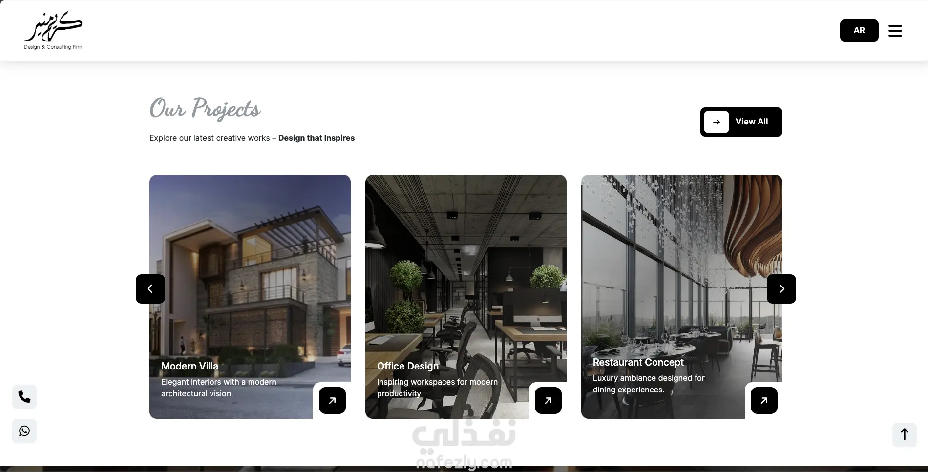 اعتمد التصميم على الألوان الهادئة والخطوط العصرية التي تعبر عن الفخامة والرقي، مع عرض المشاريع بطريقة منظمة وسهلة التصفح.