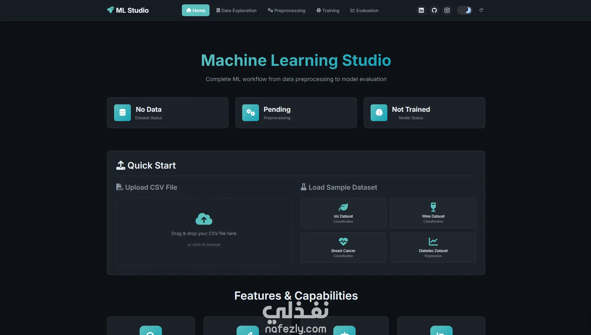 مشروع ML Workflow App هو تطبيق ويب تفاعلي متكامل يتيح إدارة وتنفيذ مراحل تعلم الآلة من البداية للنهاية عبر واجهة سهلة الاستخدام. تم تطويره باستخدام Flask مع هيكل Front-End منظم (HTML, CSS, JS) لتغطية مراحل العمل الأساسية في أي مشروع بيانات: المميزات الأساسية: - واجهة منظمة من 5 صفحات رئيسية: * Home: مقدمة بسيطة وواضحة للمستخدم. * Data Exploration: تحميل البيانات، عرضها، تحليلها إحصائيًا وبصريًا. * Preprocessing: تنظيف البيانات، معالجة القيم المفقودة، وتحويل الأنواع. * Training: اختيار نموذج ML وتدريبه. * Evaluation: عرض نتائج الأداء والمقاييس. - نشر احترافي على Render: التطبيق يعمل مباشرة على رابط ييتم استخدامه بشكل عام . هيكل برمجي نظيف وقابل للتوسع (يدعم إضافة APIs مستقبلية أو وحدات DL). - كود منظم بالكامل في مجلدات: * templates/ — واجهات HTML. * static/ — ملفات CSS وJS. * app.py — منطق Flask. - دعم لرفع ملفات CSV وتحليلها مباشرة. ملاحظات إضافية: سيتم قريبًا إضافة تحديث لتحسين تجربة الاستخدام على الهواتف (Mobile Responsiveness) لضمان توافق التصميم مع مختلف الأجهزة. قد تجد تاخر في تحميل الموقع ليس دائما نظرا لاستخدامي النسخة المجانية من الاستضافة