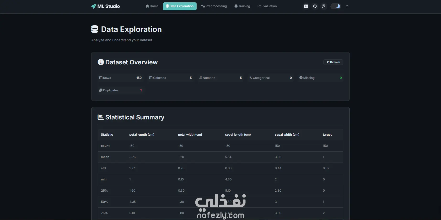 تطبيق ويب تفاعلي لإدارة مراحل تعلم الآلة(ML Workflow App).