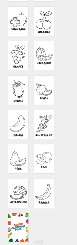 كتاب تلوين للأطفال عن الفواكه – رسومات بسيطة وممتعة 🍌🍓