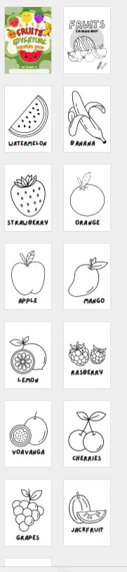 كتاب تلوين ممتع ومفيد للأطفال🍓🍌 يضم مجموعة من الرسومات البسيطة والواضحة للفواكه المختلفة، مصممة خصيصًا لتكون سهلة التلوين وتساعد الأطفال على تنمية مهاراتهم الفنية والتعرف على أسماء وأشكال الفواكه بطريقة مرحة ومسلية. يحتوي الكتاب على صفحات متنوعة تشمل الفواكه المفضلة للأطفال مثل التفاح، الموز، الفراولة، العنب، والبطيخ، مع غلاف أمامي وخلفي جذّابين يعكسان روح المرح والألوان. مناسب للأطفال من سن 3 إلى 8 سنوات، ويمكن استخدامه في المنزل أو المدرسة لتشجيع الإبداع والخيال الصغير 🎨🍉