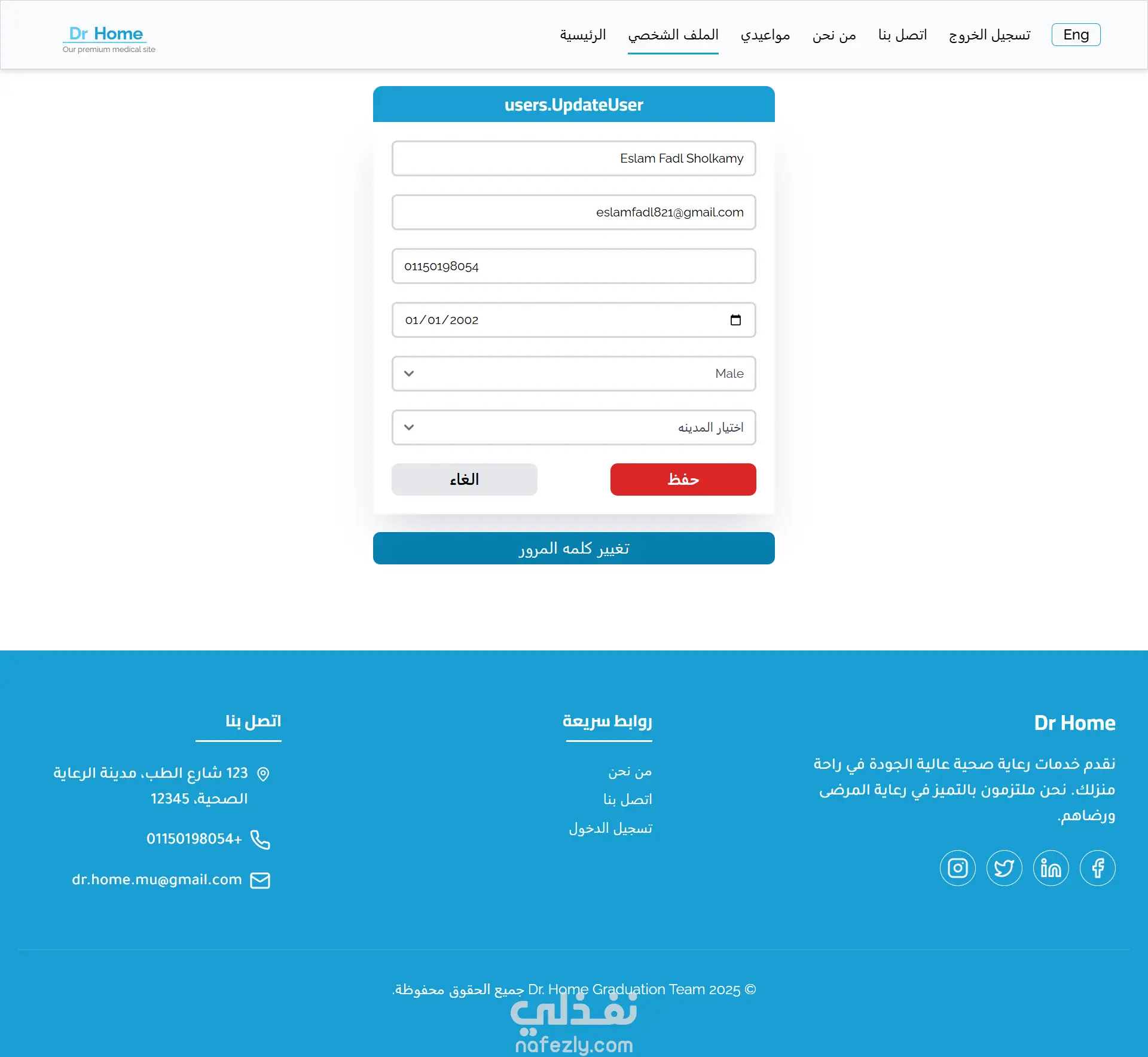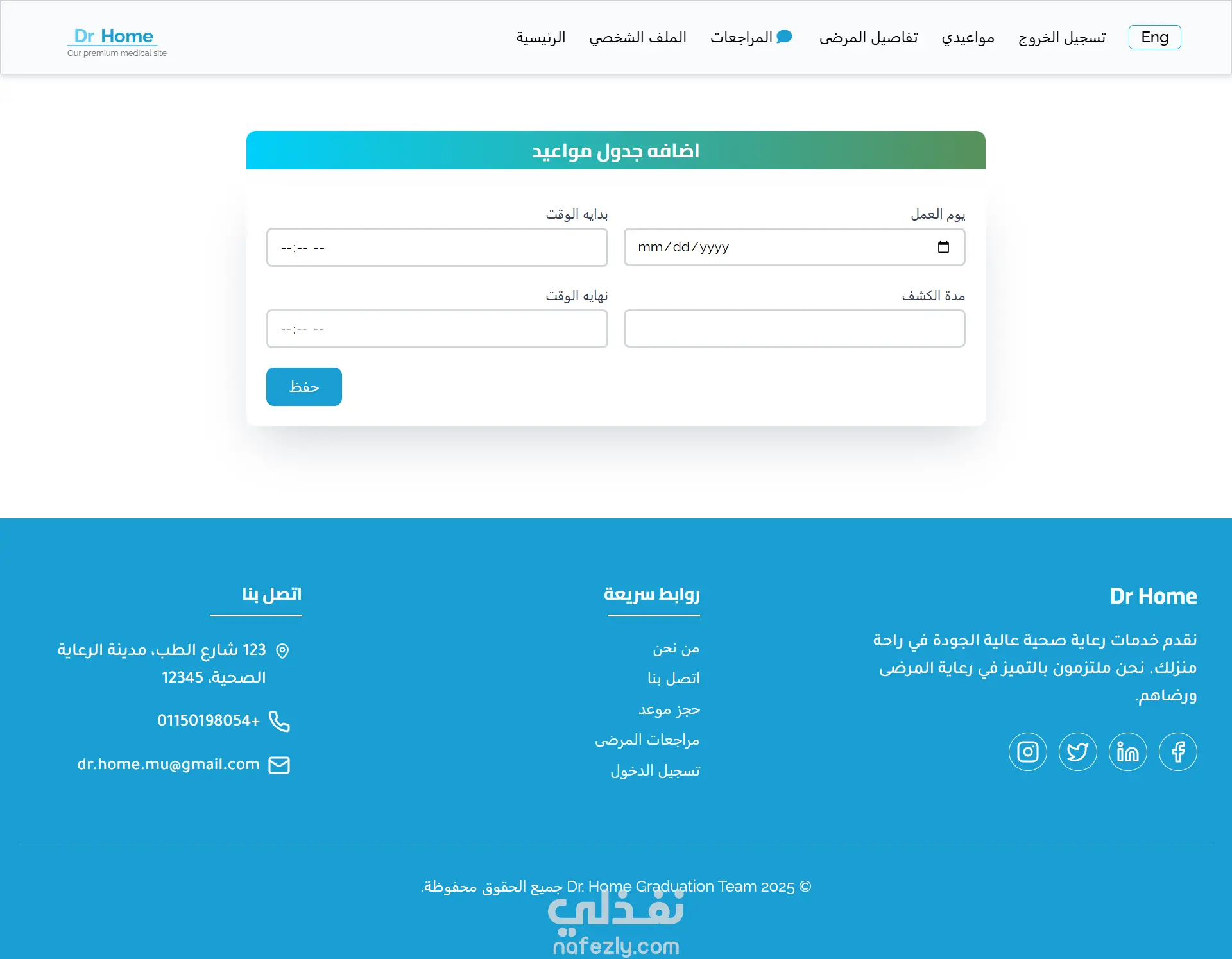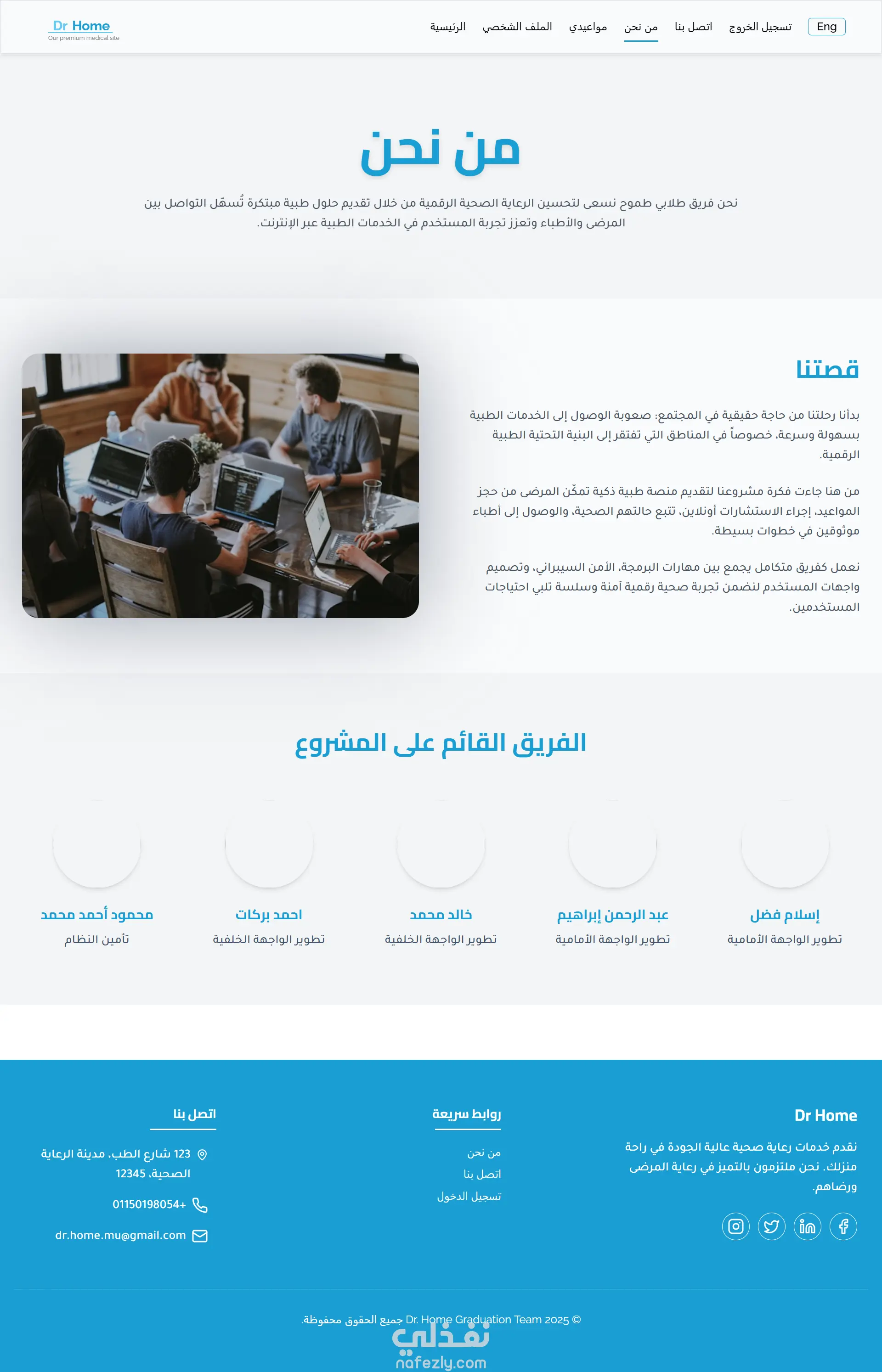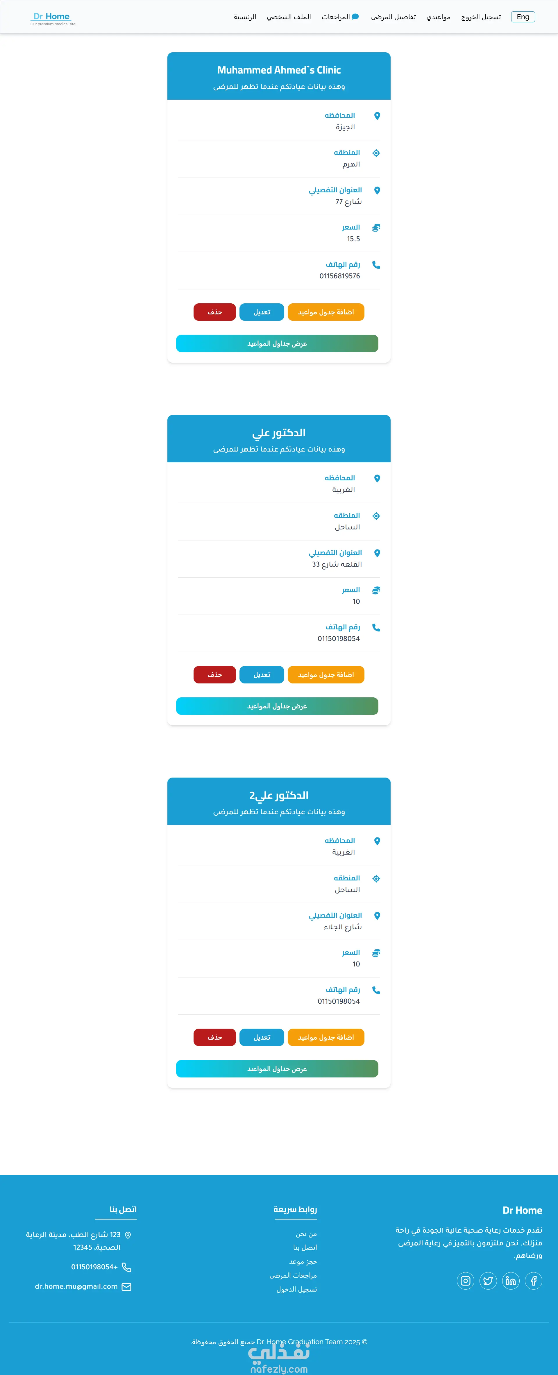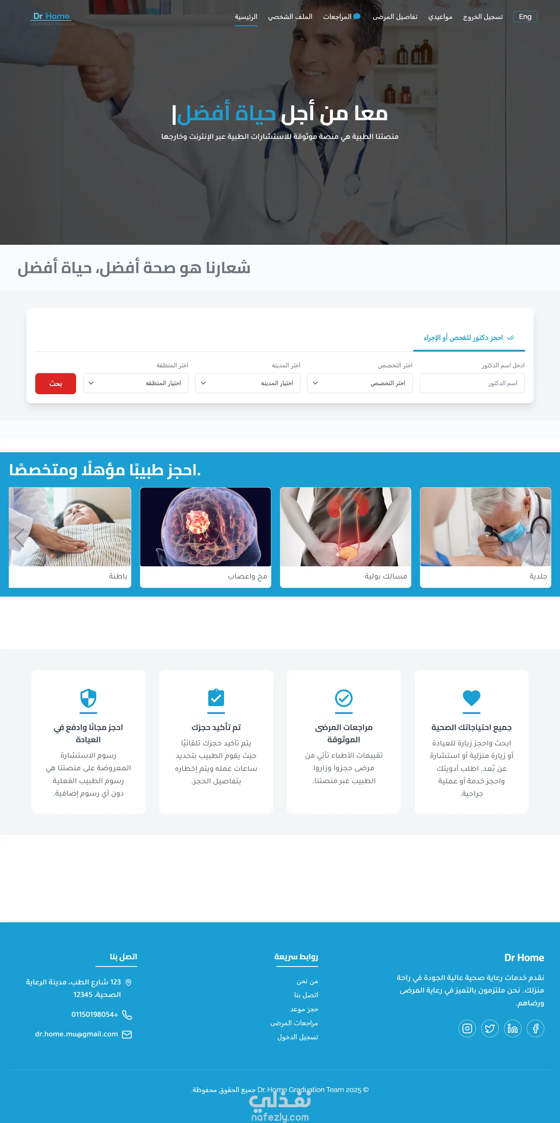 قمت بتصميم وتطوير واجهة موقع طبي متكامل باستخدام React.js و Tailwind CSS ، يهدف إلى تسهيل تجربة المستخدم في حجز المواعيد، واستعراض الأطباء والعيادات، وتنفيذ استشارات طبية عبر الإنترنت. تتميز الواجهة بتصميم عصري متجاوب (Responsive Design) يعمل بسلاسة على جميع الأجهزة، مع تجربة مستخدم مريحة وسرعة تحميل عالية. تم تنفيذ النظام بتركيز على وضوح المعلومات وسهولة التصفح، مع الاهتمام بتطبيق معايير UI/UX لضمان تجربة مميزة للمستخدمين