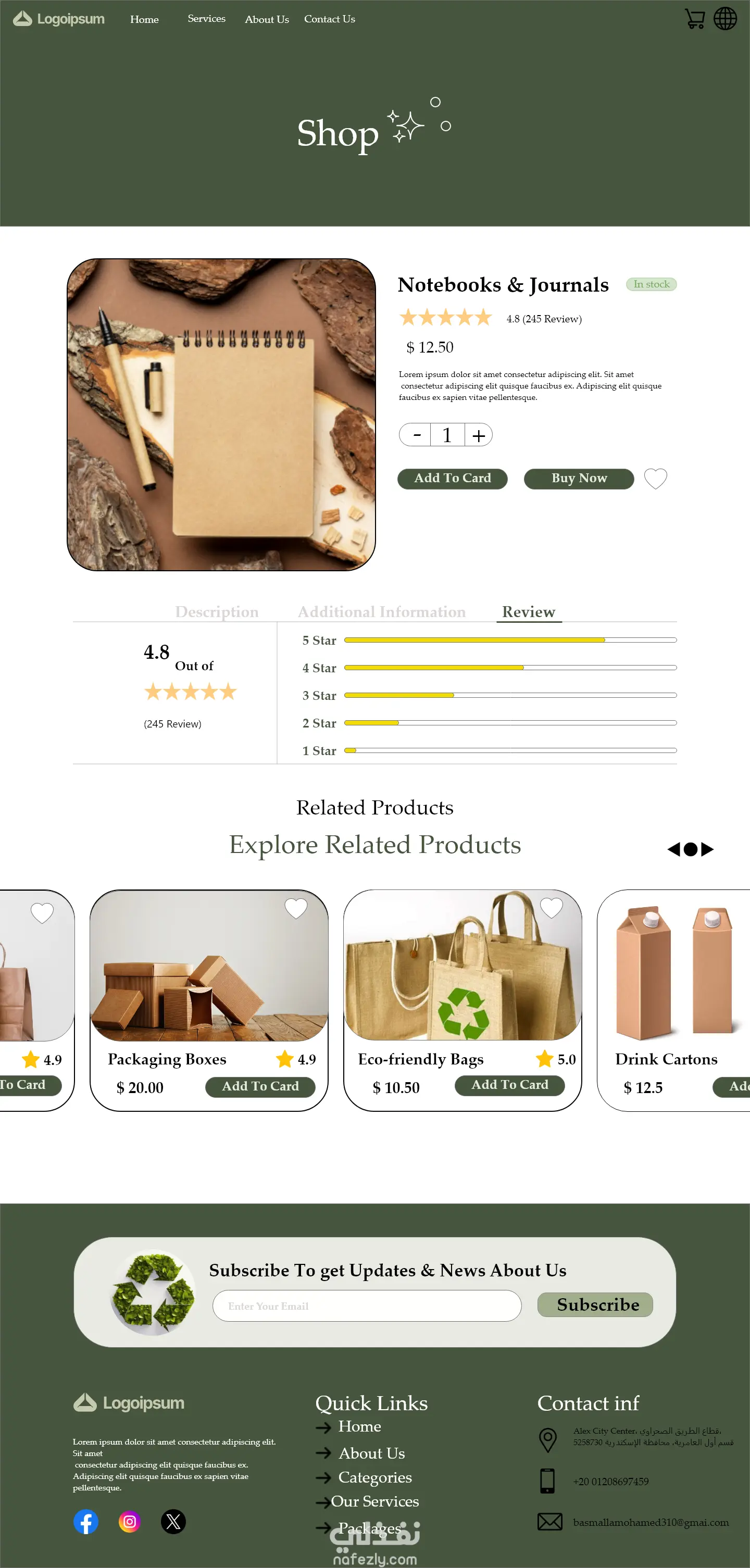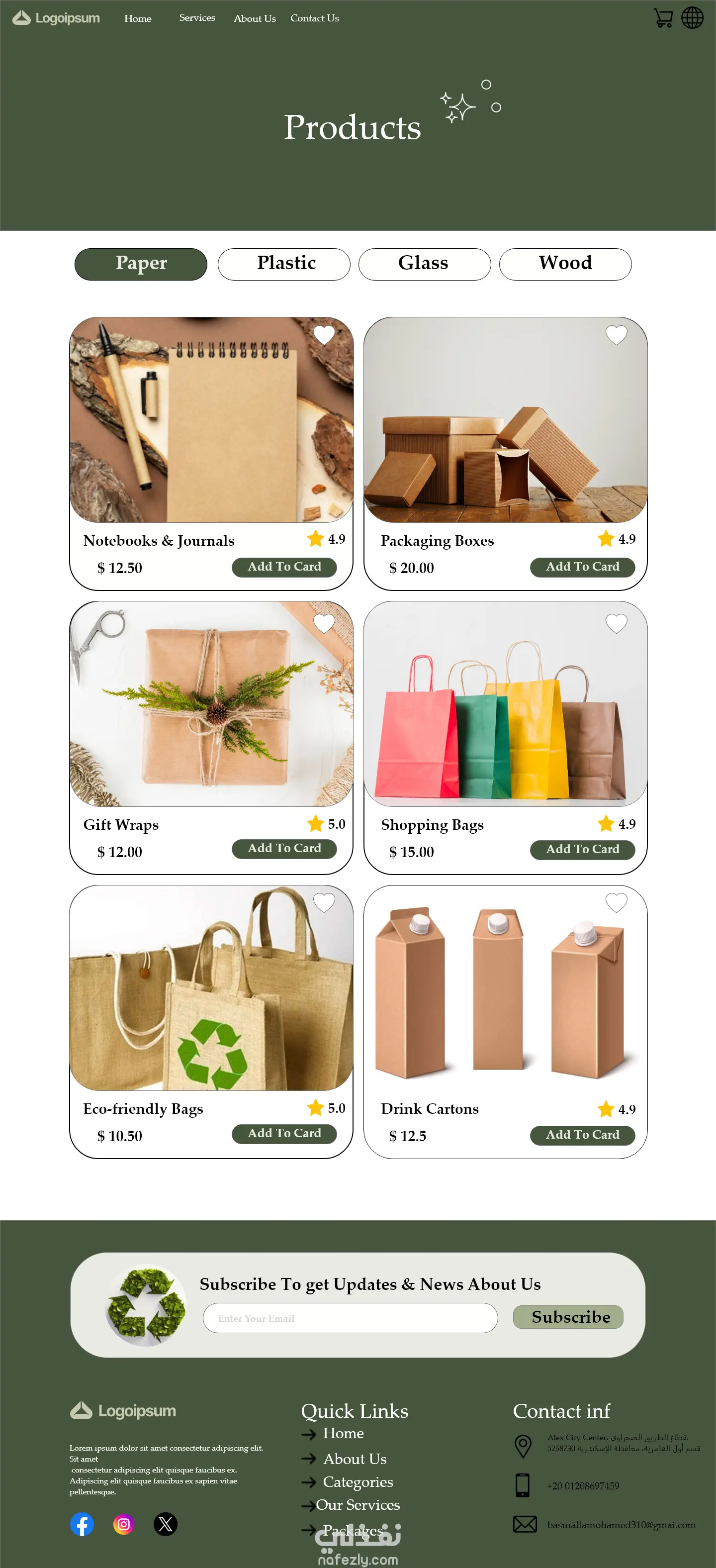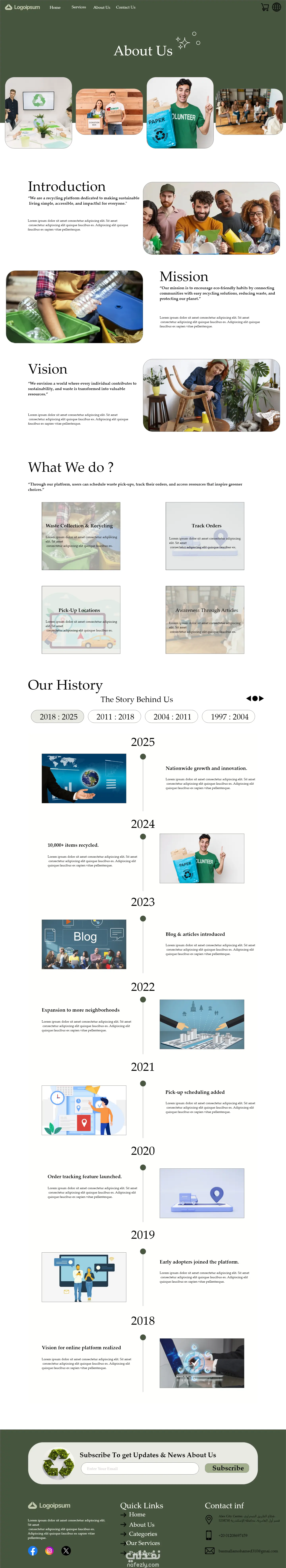 قمت بتصميم واجهة موقع تهدف إلى تعزيز الوعي بأهمية إعادة التدوير وتشجيع المستخدمين على المساهمة في حماية البيئة. ركّزت في التصميم على البساطة وسهولة الاستخدام، بحيث يتمكن المستخدم من معرفة المواد القابلة لإعادة التدوير وكيفية إعادة استخدامها بطريقة عملية وجذّابة. استخدمت في التصميم برنامج XD، وحرصت على اختيار ألوان تعكس الطابع البيئي مثل الأخضر والأزرق، مع توزيع مريح للعناصر يسهل التصفح ويجذب الانتباه.