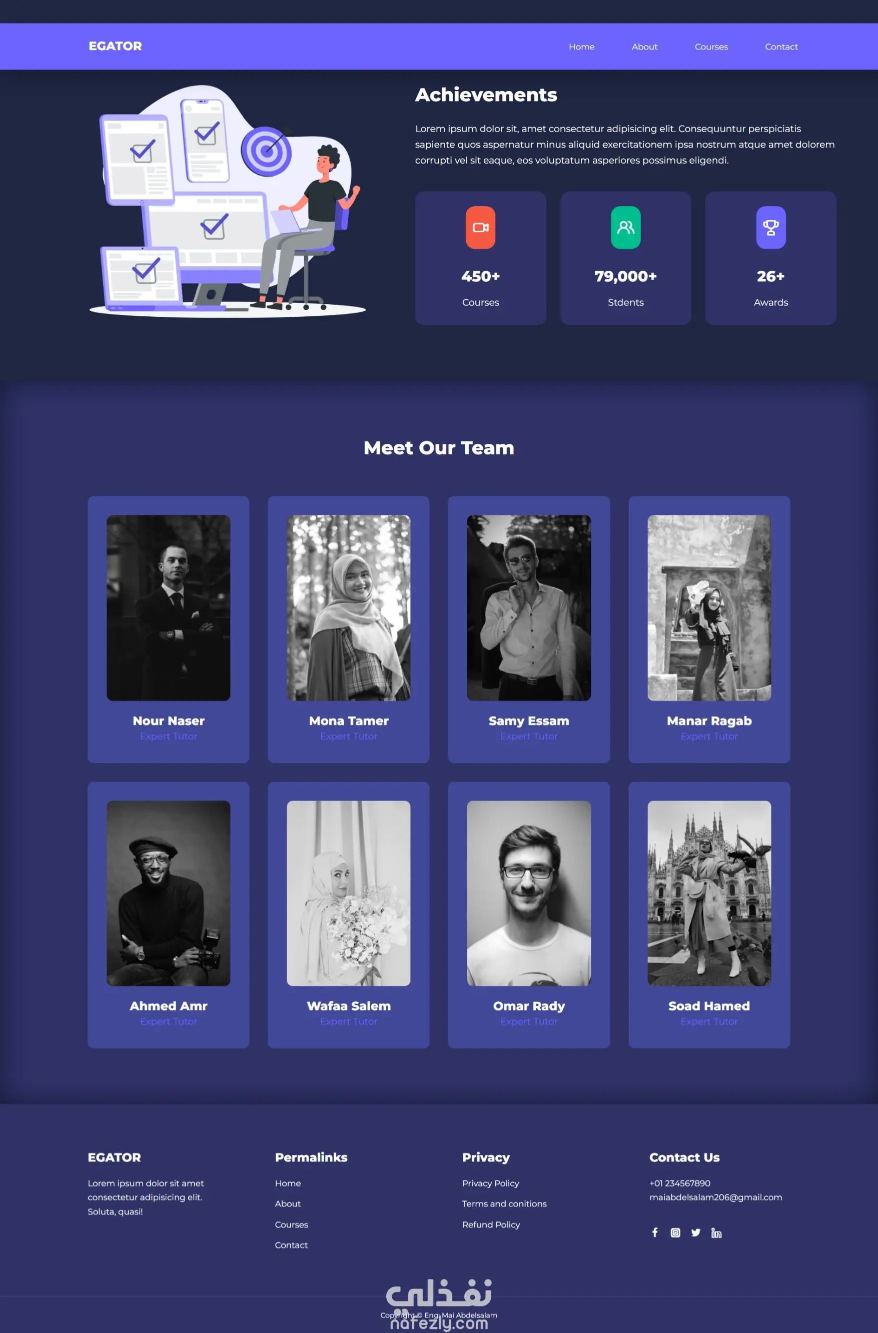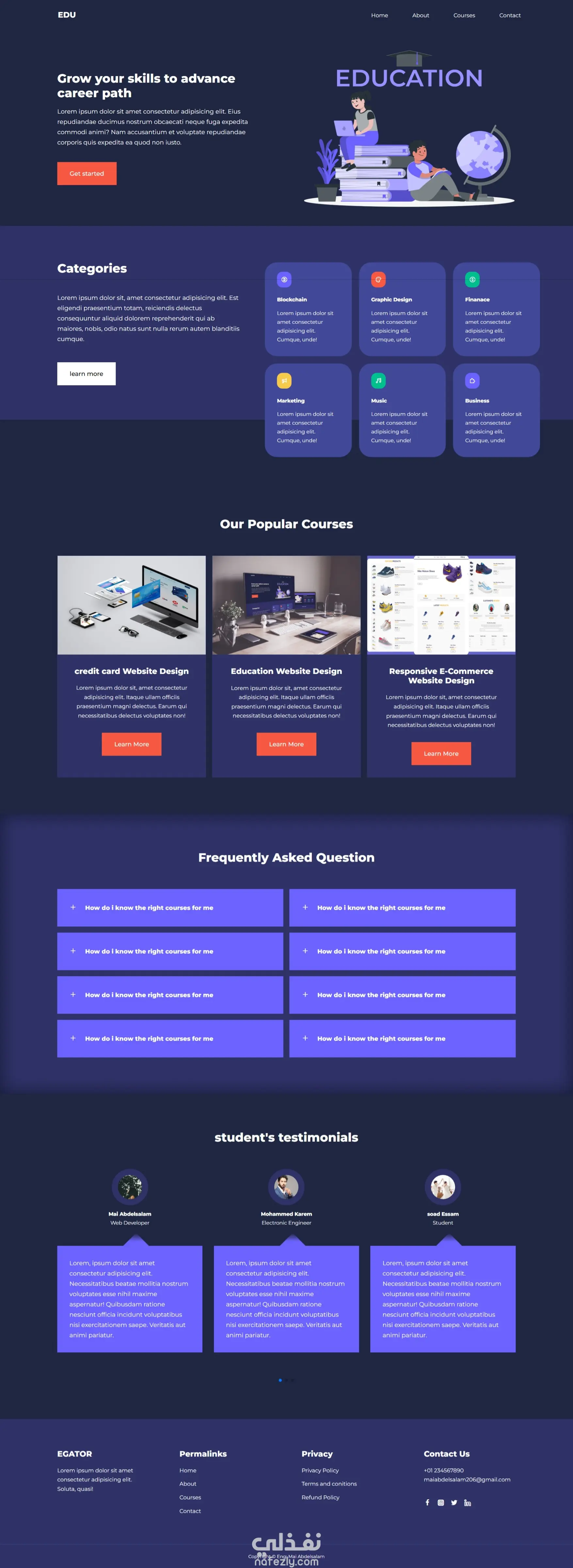 تصميم احترافي متكامل يعكس هوية الموقع التعليمية.