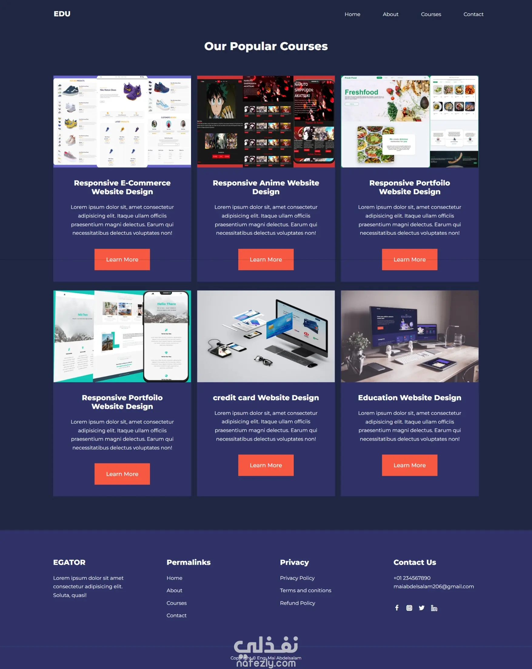Courses Page: عرض منظم للكورسات مع تصميم مرتب يسهل التصفح.