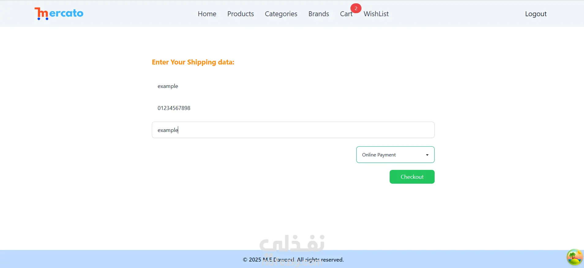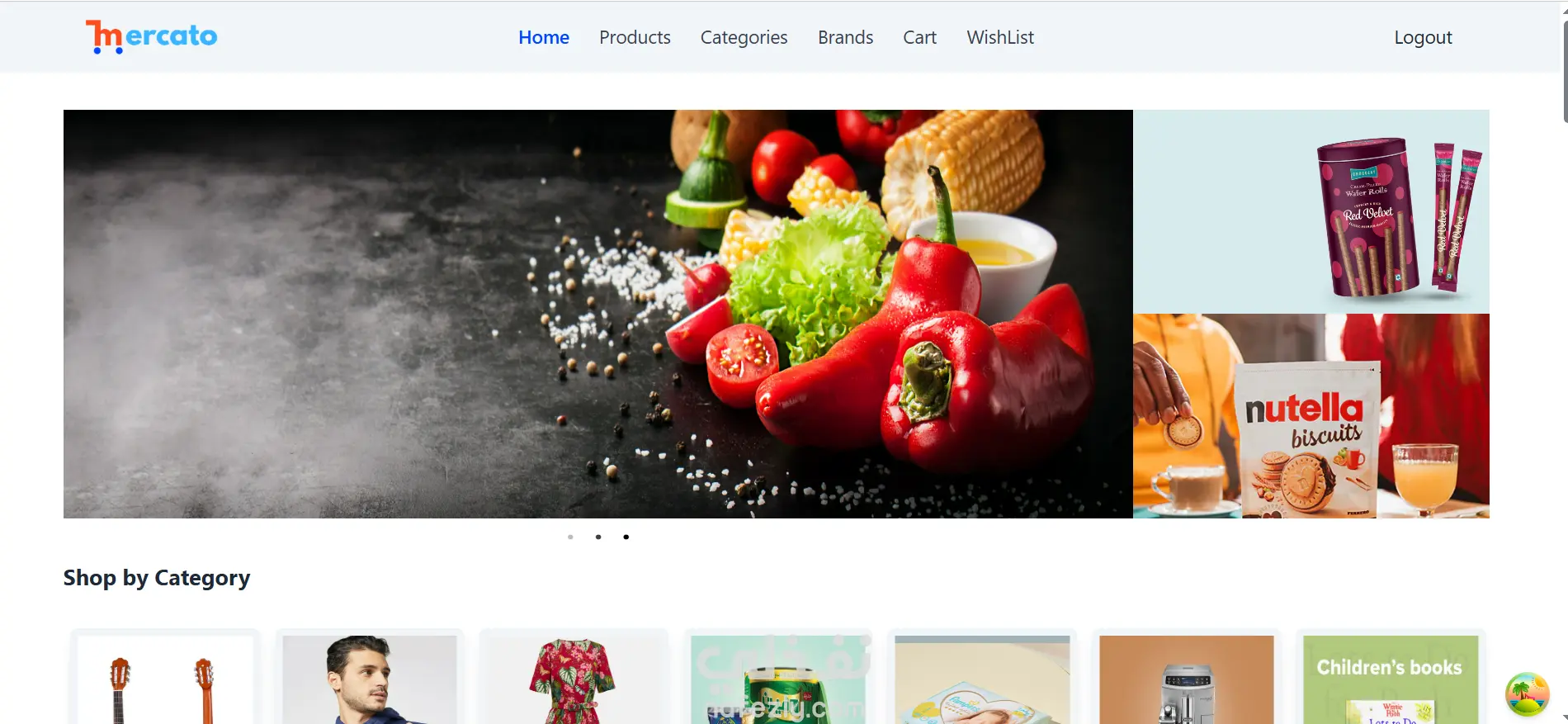 Mercato هو موقع تجارة إلكترونية حديث تم تصميمه وتطويره لتقديم تجربة تسوق مريحة وسلسة للمستخدمين. يتيح الموقع تصفح مجموعة واسعة من المنتجات من مختلف الفئات مثل الأزياء الرجالية والنسائية، المستلزمات المنزلية، الأجهزة الكهربائية، المواد الغذائية، وكتب الأطفال.