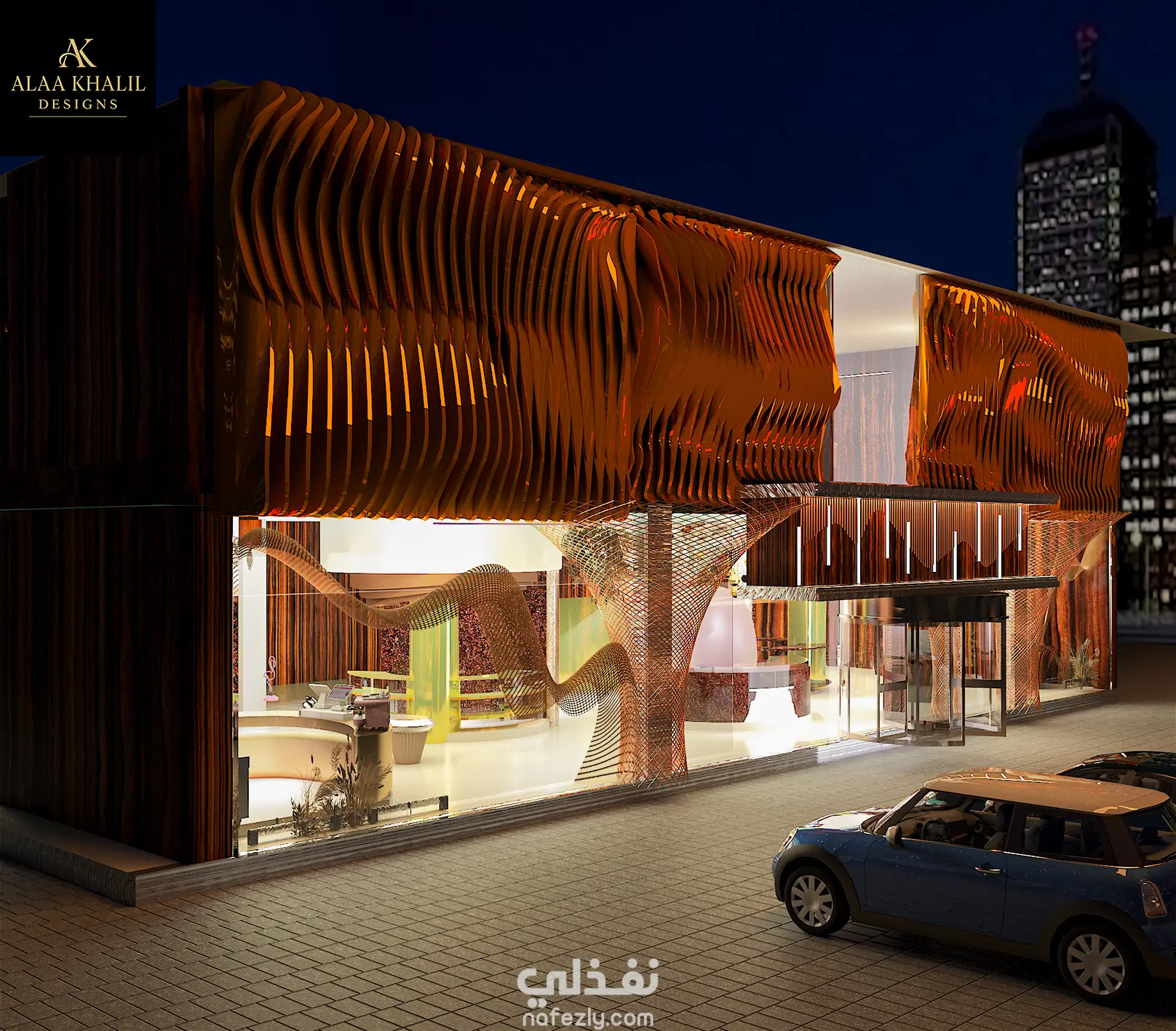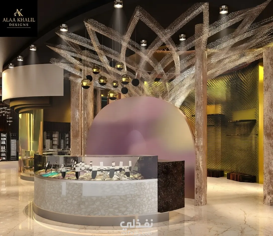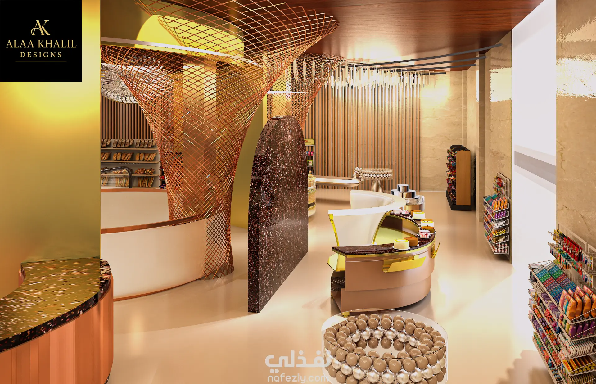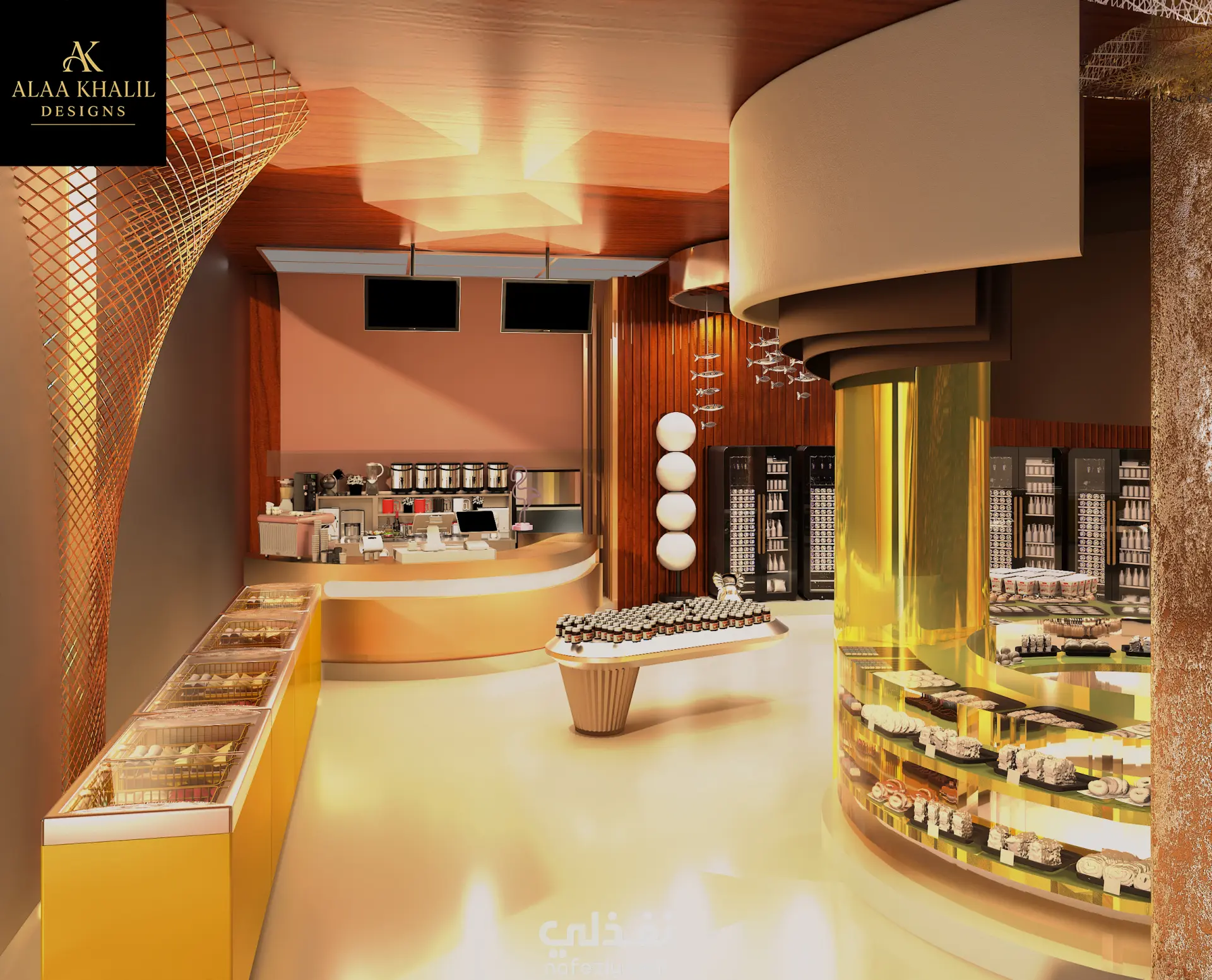 يجمع متجر الحلويات والمعجنات بين الأناقة العصرية والفخامة الراقية، مستلهماً تصميمه من انحناءات الكرواسون ودوائر الدونات والأشكال البارامترية. تتكون لوحة الألوان الغنية، المستوحاة من الشوكولاتة والقرفة والحلوى، من خامات فاخرة مثل الذهب والفضة والذهب الوردي والنحاس والزجاج والخشب والجرانيت والرخام. تضيف الإضاءة الدافئة لمسة من اللمعان على الأسطح الملساء وتبرز القوام الطبيعي، مما يخلق أجواءً راقية ودافئة في الوقت نفسه، تتناغم تماماً مع الحلويات الفاخرة المعروضة