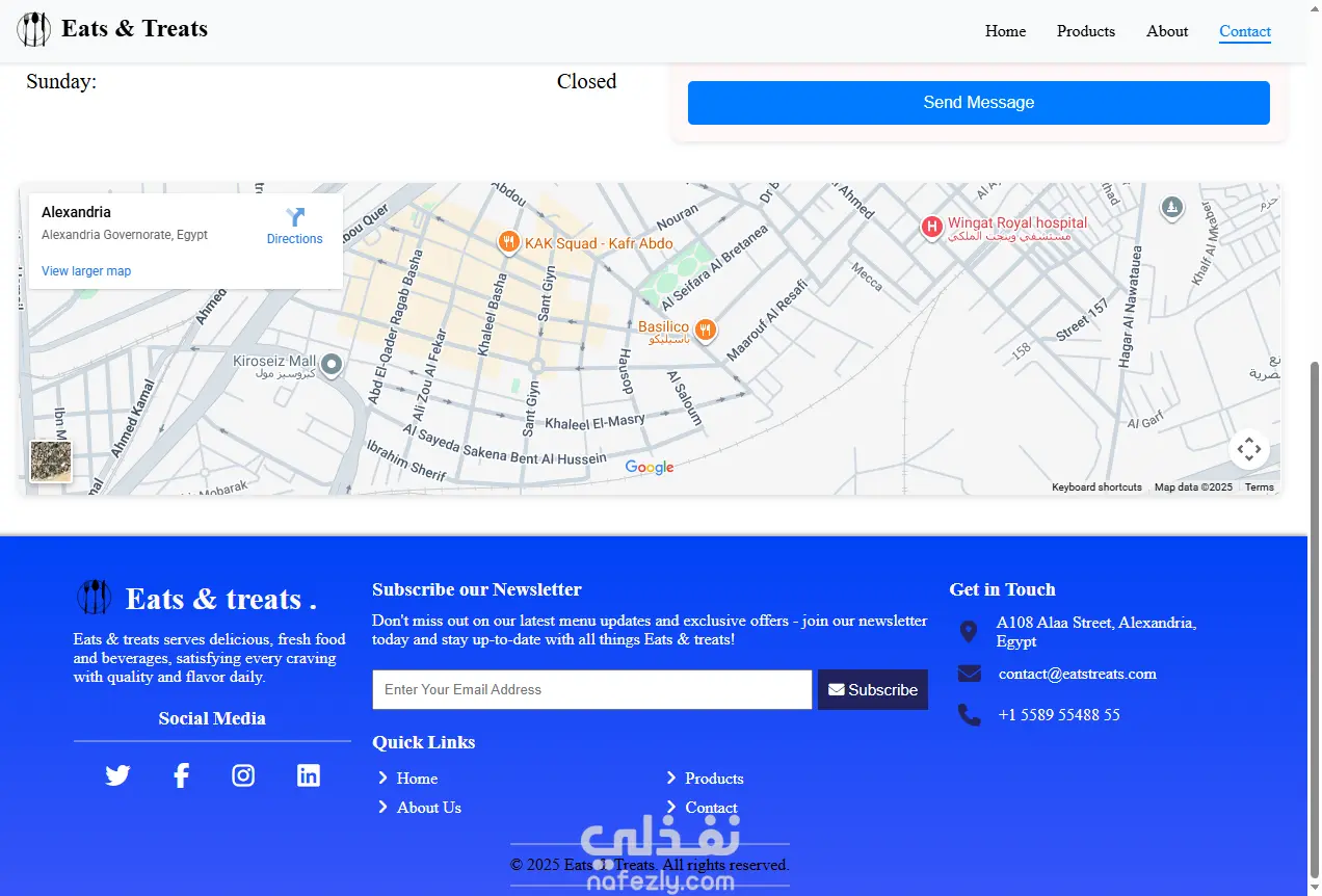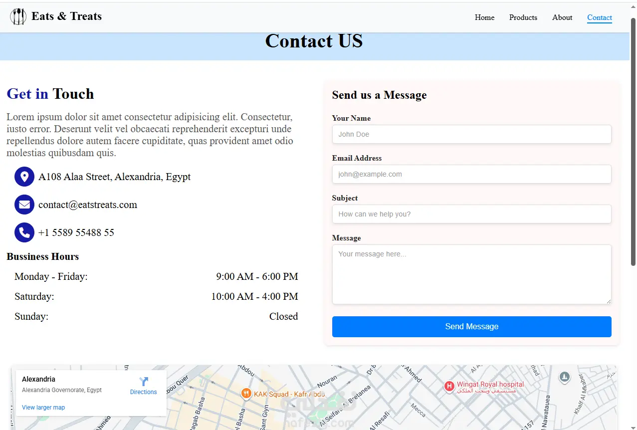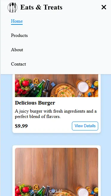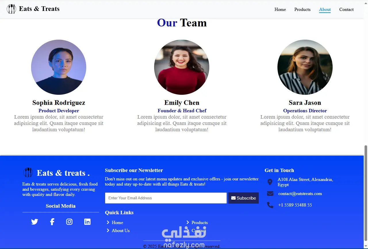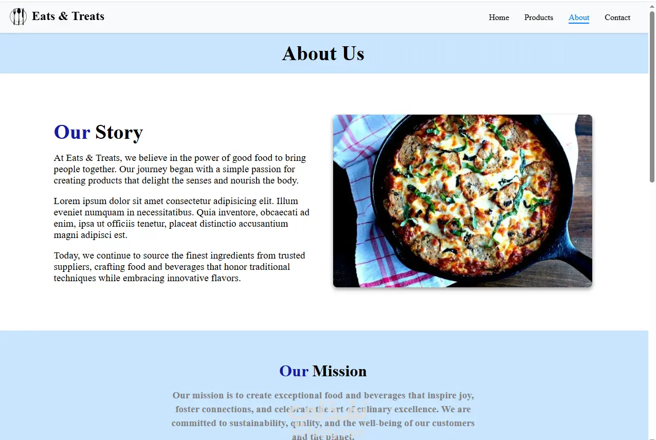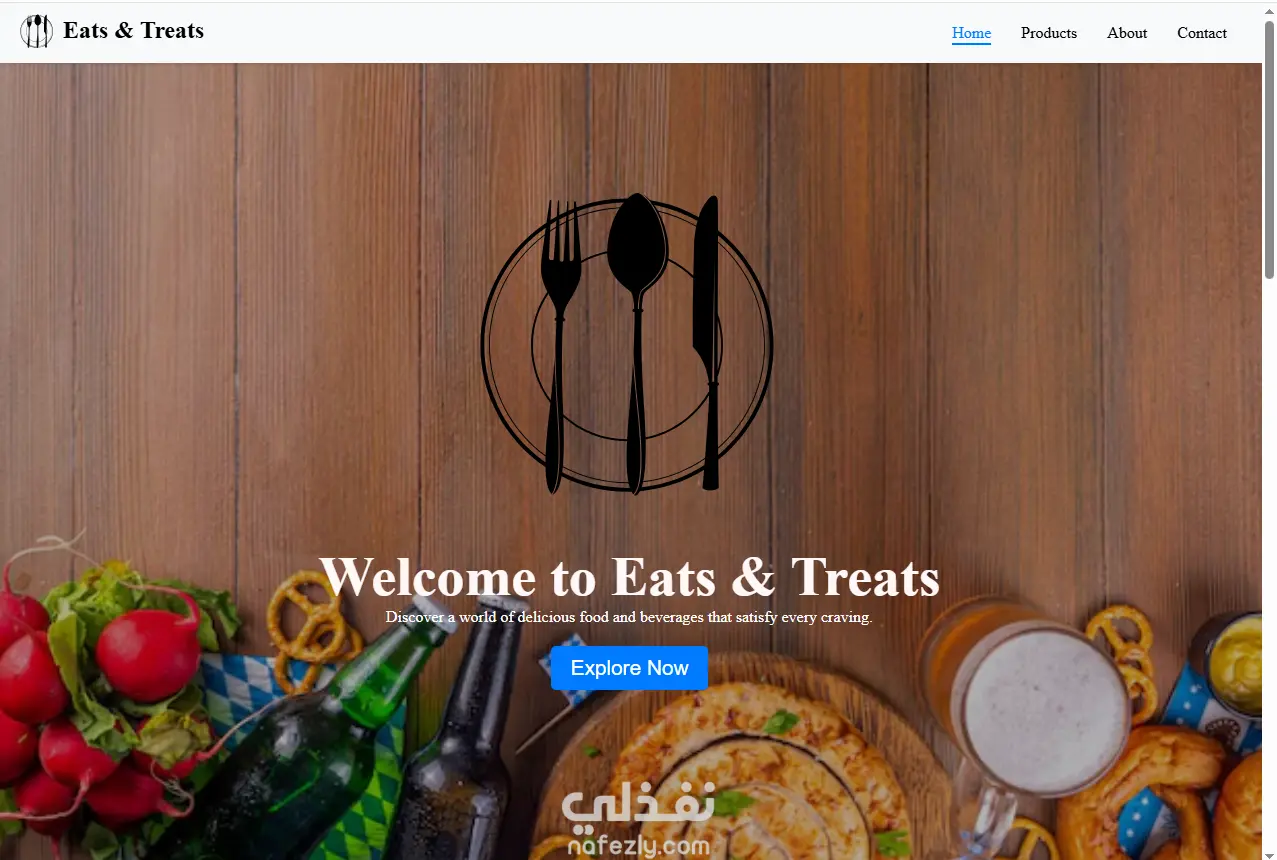 * الموقع مكوّن من 4 صفحات رئيسية (Home, Products, About, Contact)