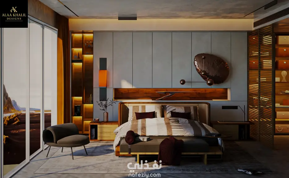 مراحل تنفيذ المشروع تم البدء في إعداد المشروع من خلال تحليل المساقط المعمارية ودراسة توزيع الفراغات الداخلية بما يحقق الكفاءة الوظيفية والجمالية المطلوبة. تم إعداد المخططات الأفقية باستخدام برنامج AutoCAD لتوضيح العلاقات المكانية وتوزيع الأثاث ومسارات الحركة بدقة عالية. بعد ذلك، تم تطوير الفكرة التصميمية (Concept Design) بما يتوافق مع الطراز المعتمد للمشروع، مع اختيار منظومة الألوان، المواد، والإضاءة المناسبة لإبراز الهوية البصرية للتصميم. تم تحويل الرسومات الثنائية الأبعاد إلى نموذج ثلاثي الأبعاد باستخدام برنامج 3ds Max، حيث تم إظهار تفاصيل التصميم الداخلي بدقة واقعية، مع إجراء عمليات الإخراج والريندر باستخدام محركات احترافية مثل V-Ray أو Corona Renderer لإبراز الخامات والإضاءة بشكل متكامل. وفي المرحلة النهائية، تم تحسين المشاهد وضبط الإضاءة والألوان باستخدام برنامج Photoshop بهدف إعداد لوحات عرض احترافية تُبرز جودة التصميم وتُسهم في توضيح الفكرة النهائية للمشروع