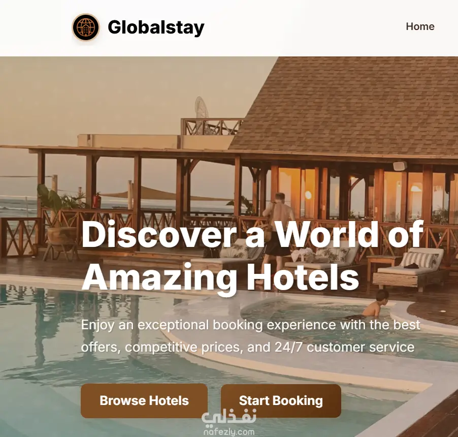 قدم لك خدمة برمجة واجهة المستخدم (Front-end) لمواقع الحجز والفنادق، مثل Globalstay كمثال عملي، مع التالي: