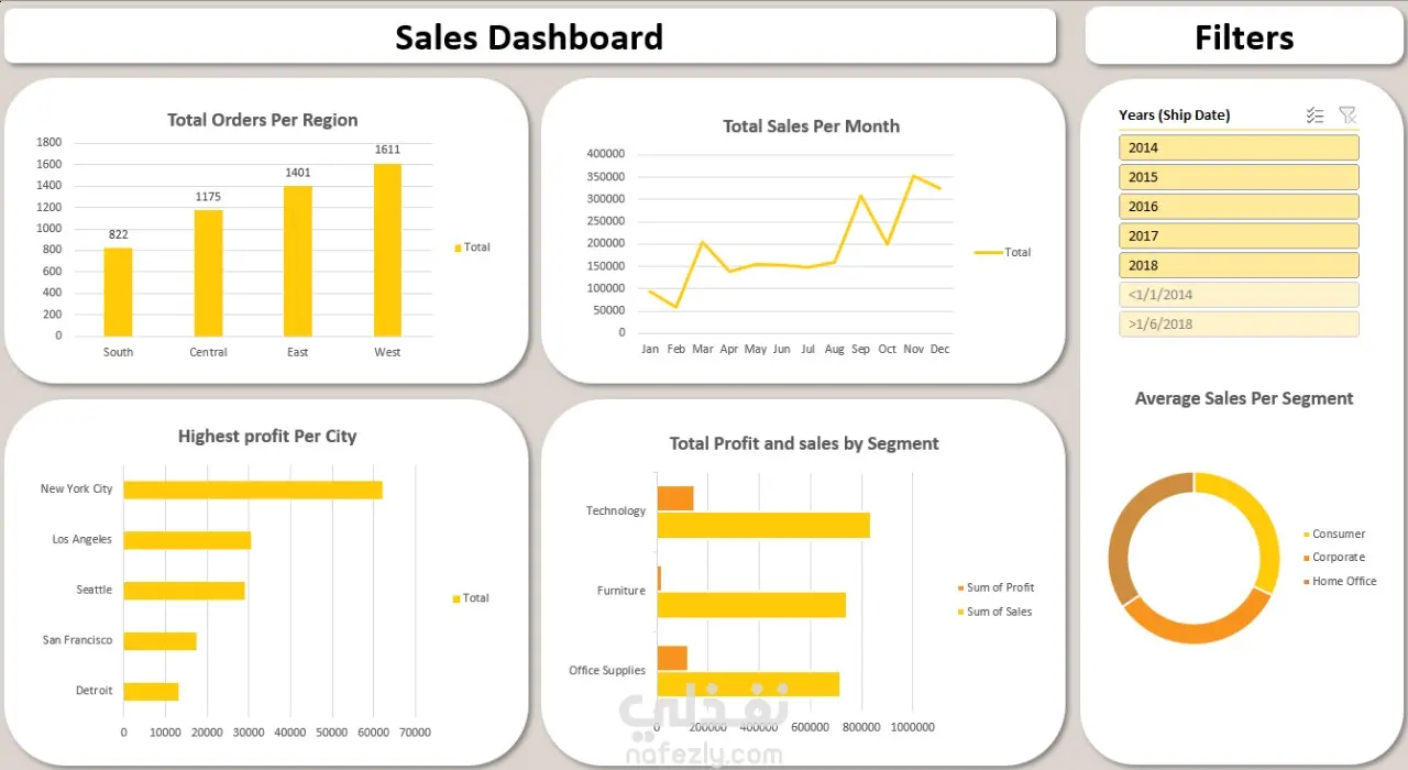 داشبورد تفاعلي لعرض المبيعات حسب السنة باستخدام Excel