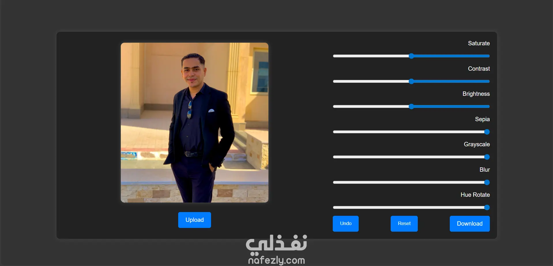 موقع ويب متكامل لتعديل الصور أونلاين دون الحاجة لأي برامج خارجية. يسمح للمستخدم بتعديل الإضاءة، السطوع، التباين، التشبع، وإضافة فلاتر وتأثيرات مباشرة على الصورة. الواجهة بسيطة وسريعة الاستجابة، مع إمكانية معاينة التعديلات في الوقت الفعلي قبل الحفظ.