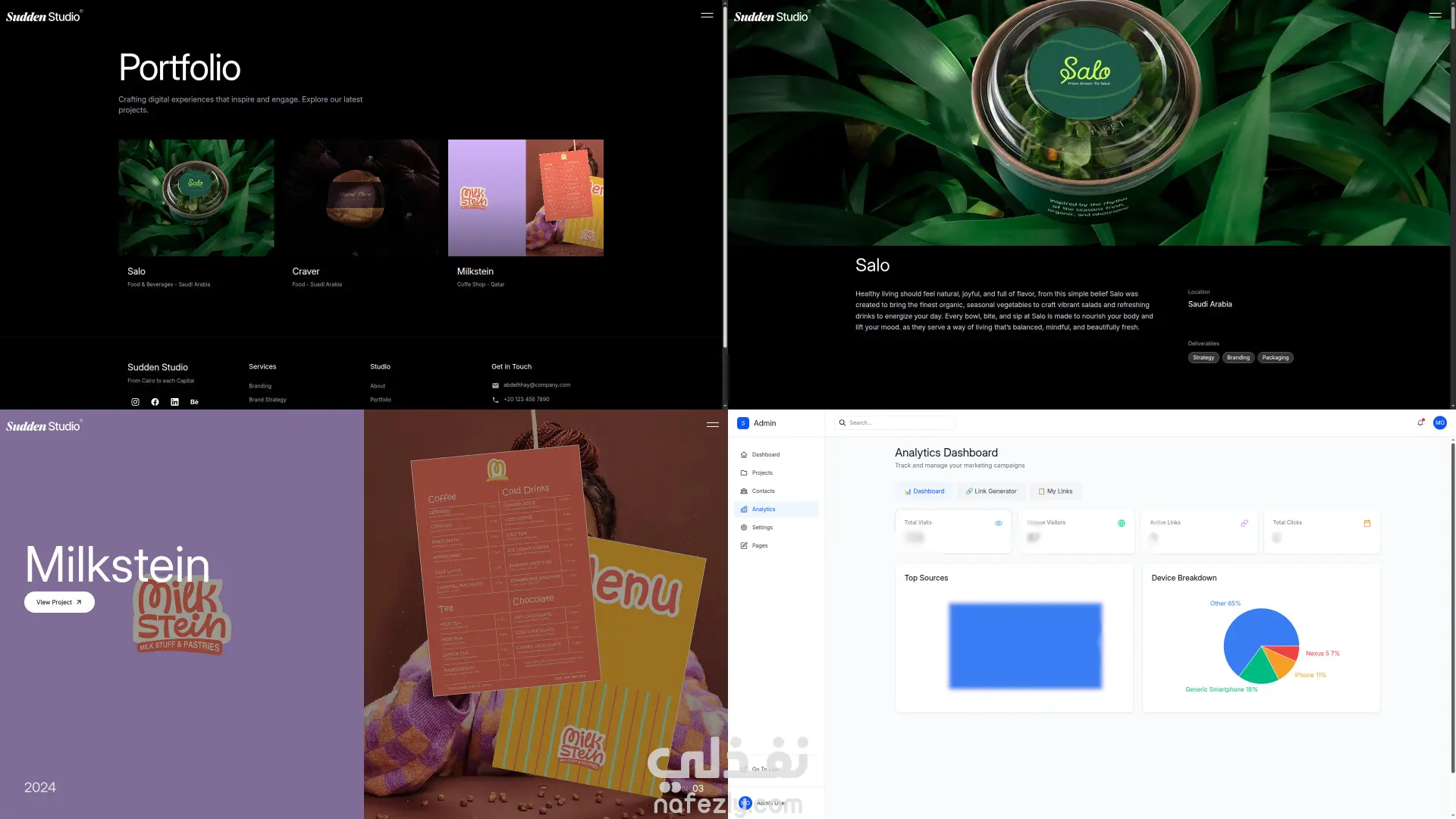 قمت بتطوير موقع إلكتروني متكامل لوكالة Sudden Studio المتخصصة في التسويق وبناء العلامات التجارية، باستخدام MERN Stack (MongoDB, Express.js, React, Node.js). تم بناء الموقع بواجهة حديثة وسريعة باستخدام React.js وTailwind CSS لضمان تجربة مستخدم مميزة وسلاسة في التصفح. أما في الجزء الخلفي فقد استخدمت Express.js وNode.js مع JWT Authentication وExpress-rate-limit لتعزيز أمان البيانات وحماية التطبيق. كما قمت بإنشاء لوحة تحكم (Admin Dashboard) تتيح للمدير إدارة المشاريع، متابعة الرسائل وطلبات التواصل، وإنشاء روابط تتبع لأداء الزوار، إلى جانب إعدادات التحكم في الموقع. الموقع يتميز بالأداء العالي، التصميم العصري، وسهولة الإدارة. يمكن الاطلاع على صور الواجهة ولوحة التحكم في المعرض أدناه.