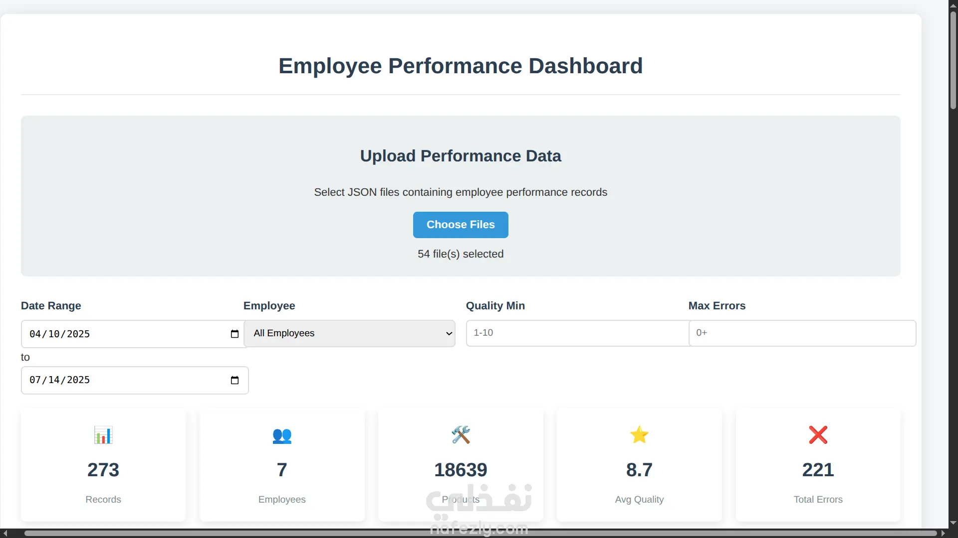 قمت بتطوير أداة مخصصة لتحليل أداء فريق العمل بشكل يومي، تتضمن صفحات لتسجيل المهام، لوحة تحكم مركزية لعرض الأداء، تقارير أسبوعية تلقائية، وإمكانية تصفية النتائج حسب الموظف. تم بناء الأداة باستخدام JavaScript، HTML/CSS تتميز الأداة بإمكانية إضافة أيام جديدة بسهولة وتحليل البيانات بشكل مرئي واضح. وقد ساعدت هذه الأداة في تحسين متابعة أداء الفريق بشكل مستمر، وتوفير تقارير تدعم اتخاذ قرارات مدروسة وتعزز من الإنتاجية.