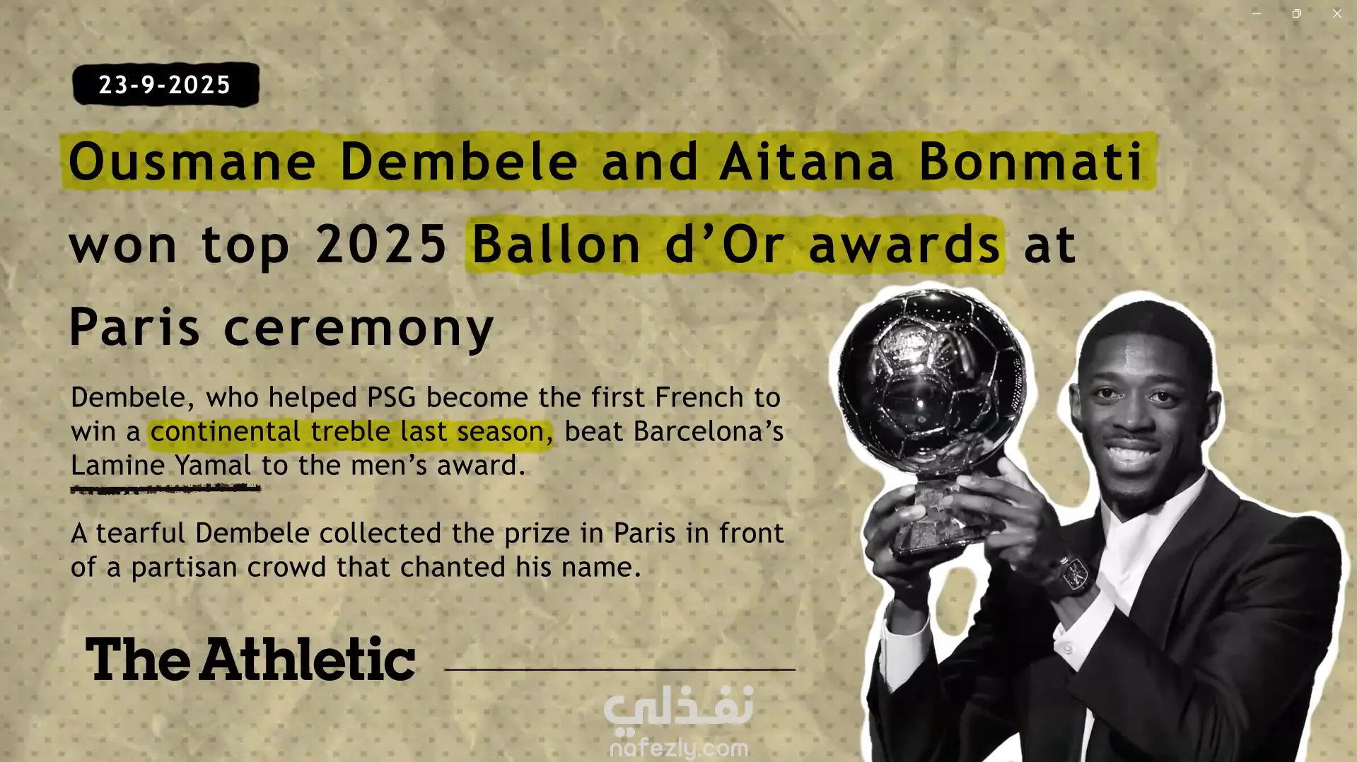 فيديو كولاج يبين الفائز بالكرة الذهبية لعام 2025 - عثمان ديمبيلي