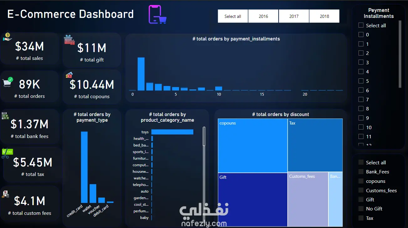 في هذا المشروع، قمت بتطوير لوحة تحكم متقدمة للتجارة الإلكترونية باستخدام Power BI، تهدف إلى تحليل شامل لأداء المتجر الإلكتروني وتقديم رؤى دقيقة تساعد على اتخاذ قرارات مبنية على البيانات.