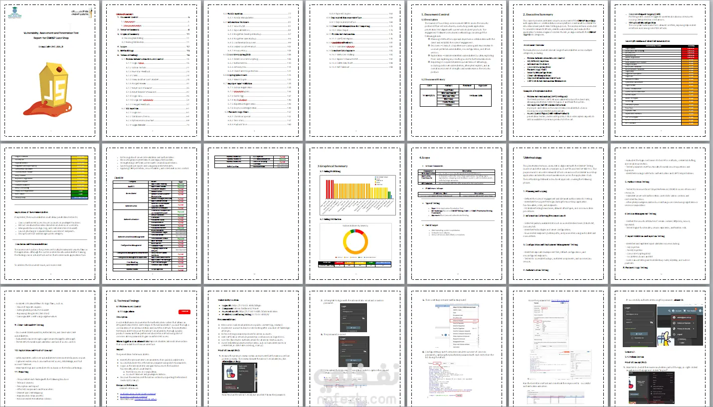 ده تقرير عملته بعد اختبار اختراق لموقع لمشروع سابق بصيغة Word وطبقته على نطاق محدد وفق معايير OWASP / PTES. التقرير موجّه للفريق الفني والإدارة معًا، ومصاغ بلغة تقنية واضحة وسهلة الفهم.