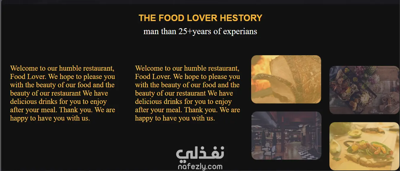 موقع ويب لمطعم يقدم قائمة الطعام، العروض، ومعلومات التواصل بطريقة تفاعلية وجذابة. الموقع متجاوب لجميع الأجهزة ومطور بـ HTML, CSS, JavaScript.