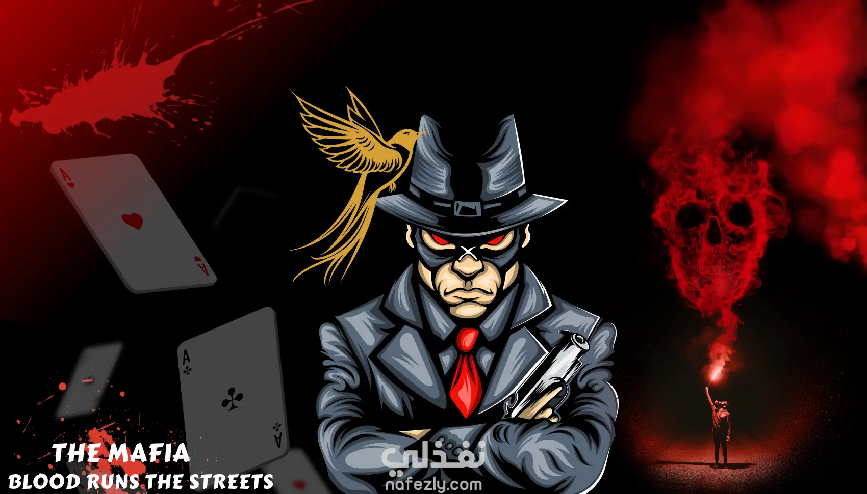 تصميم بوستر غامض بعنوان "The Mafia"، يجسّد عالم العصابات المظلم ممزوجًا بعنصر الرعب.
