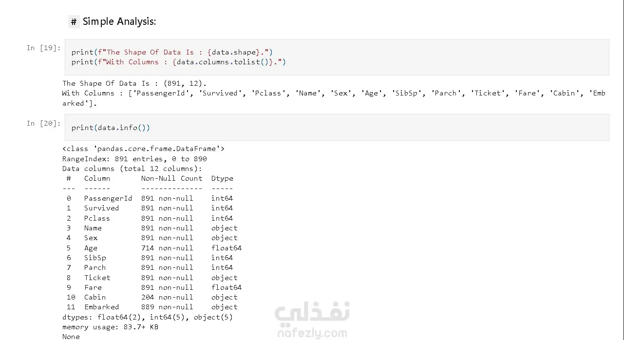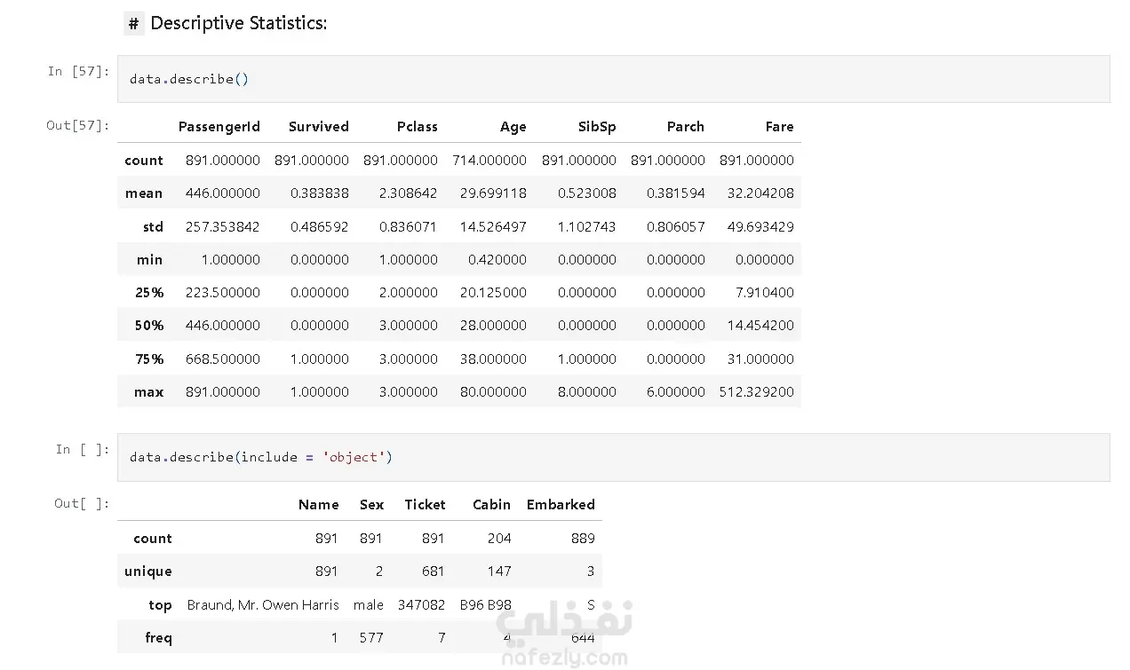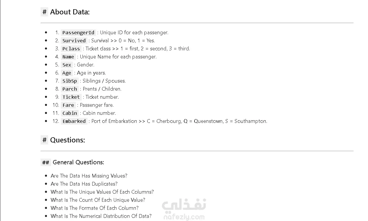 تحتوي البيانات على معلومات حول ركاب تيتانيك، مثل: