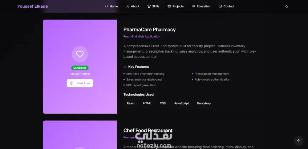 بوىتفوليو شخصي لتوضيح المشاريع و الخبرات و المهارات و الدورات التدريبية و شهاداتها