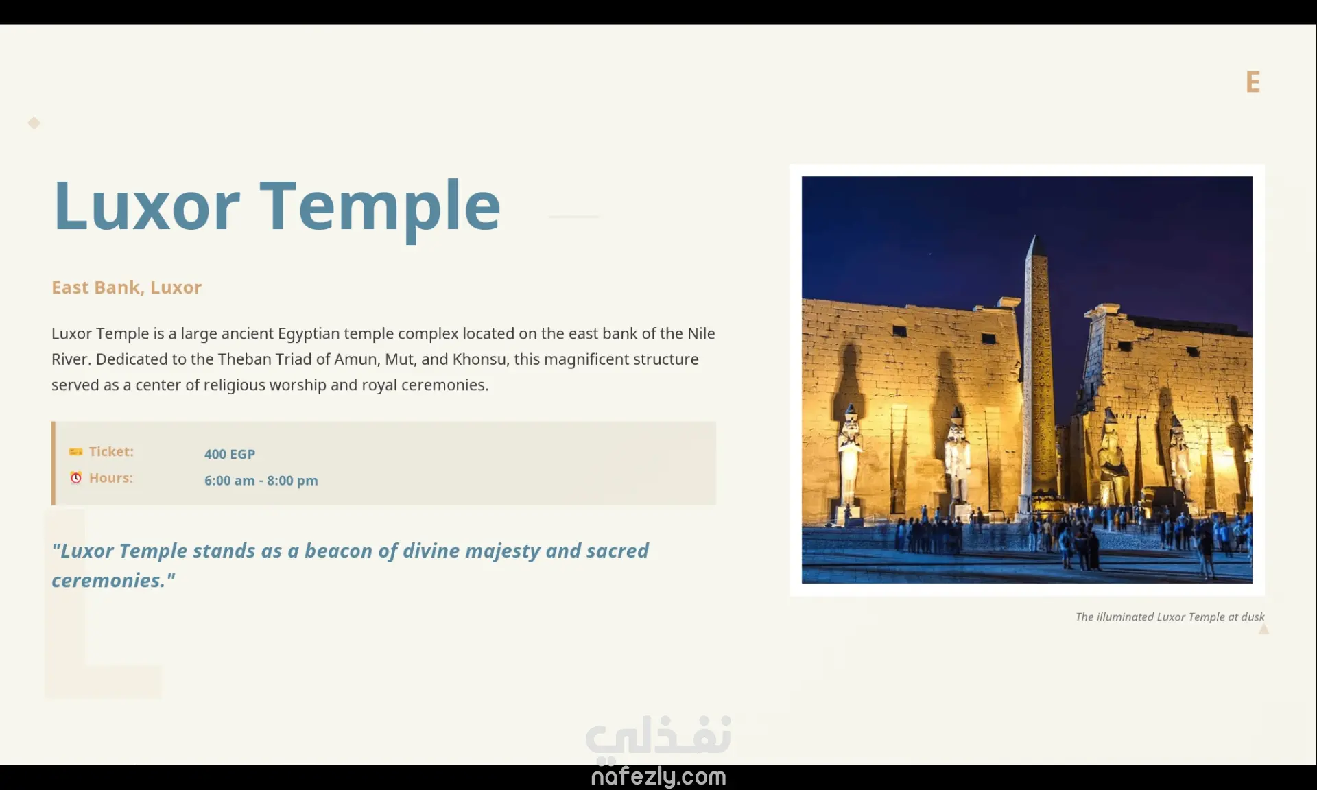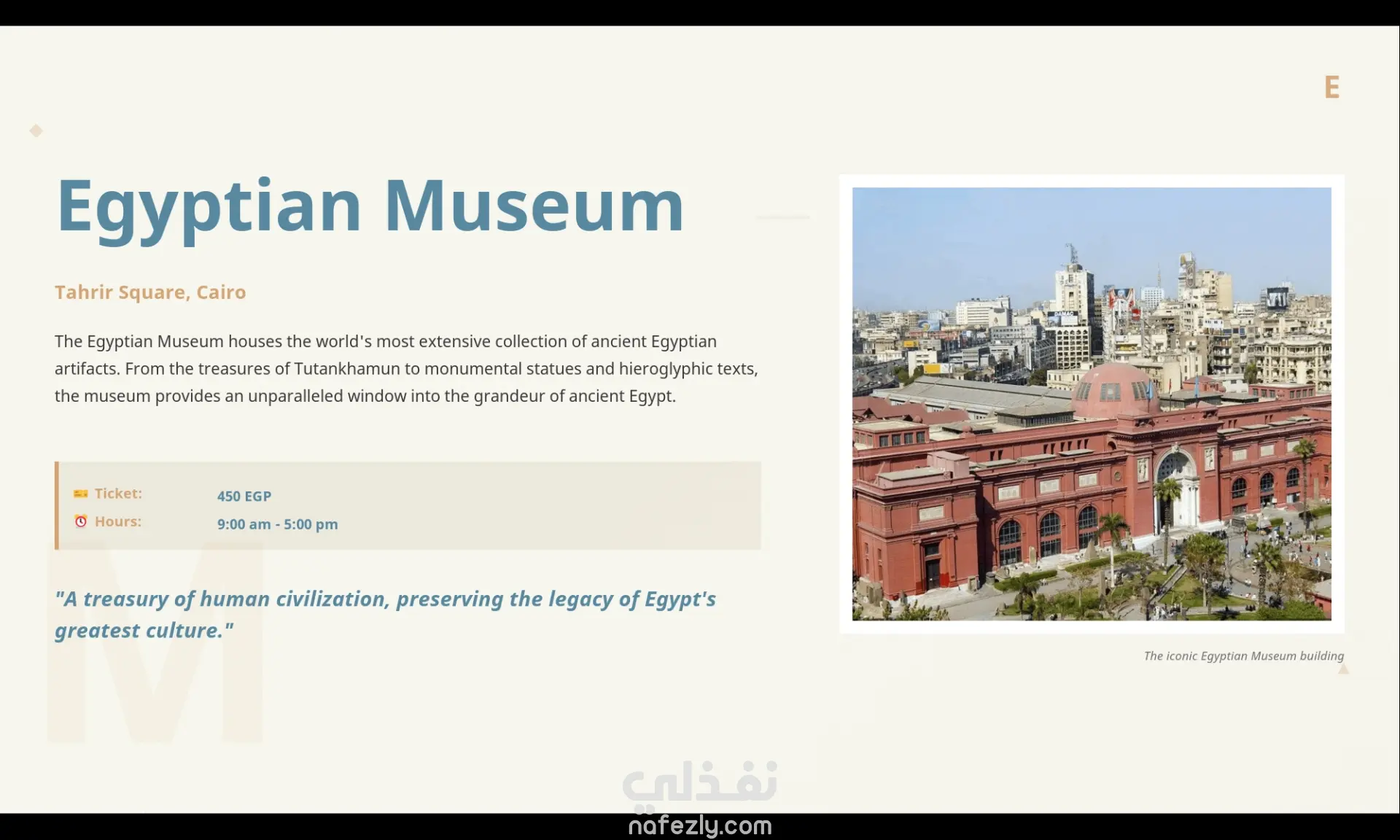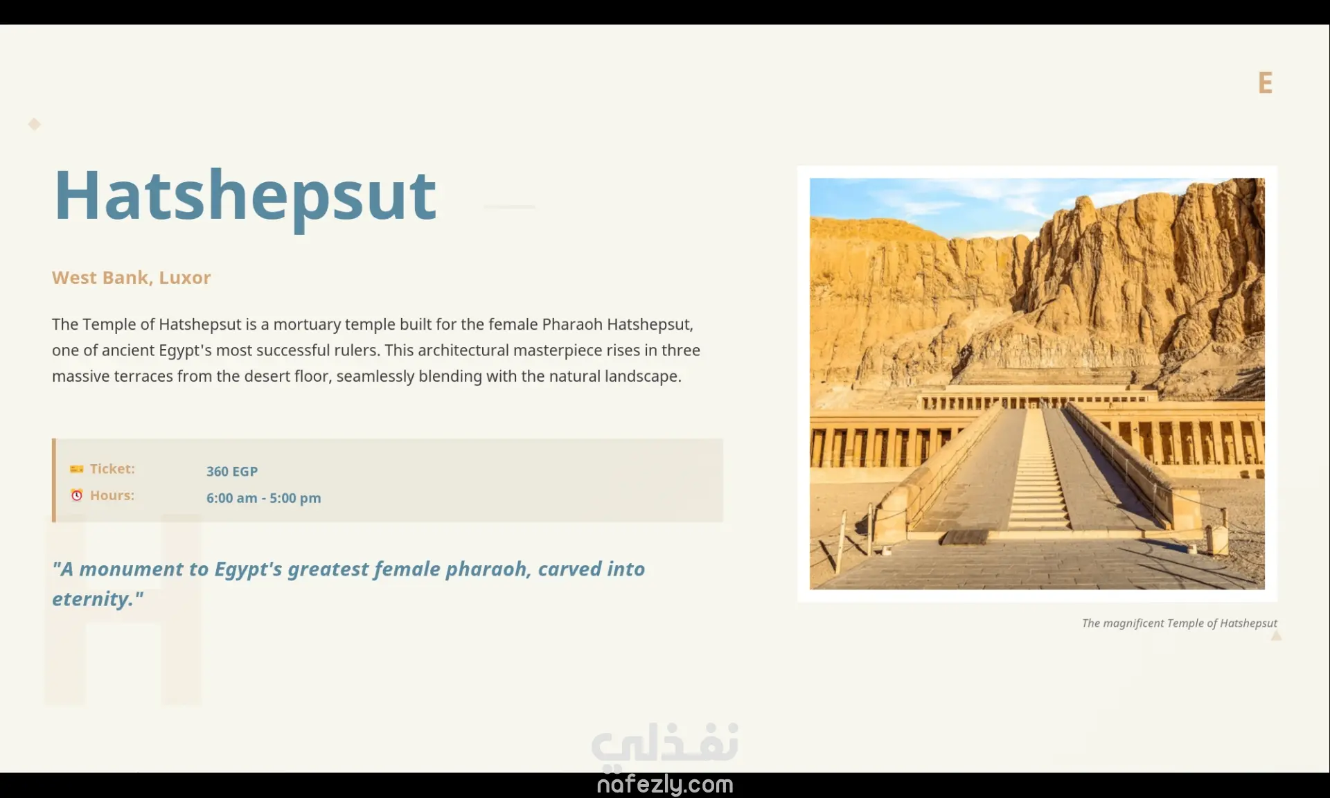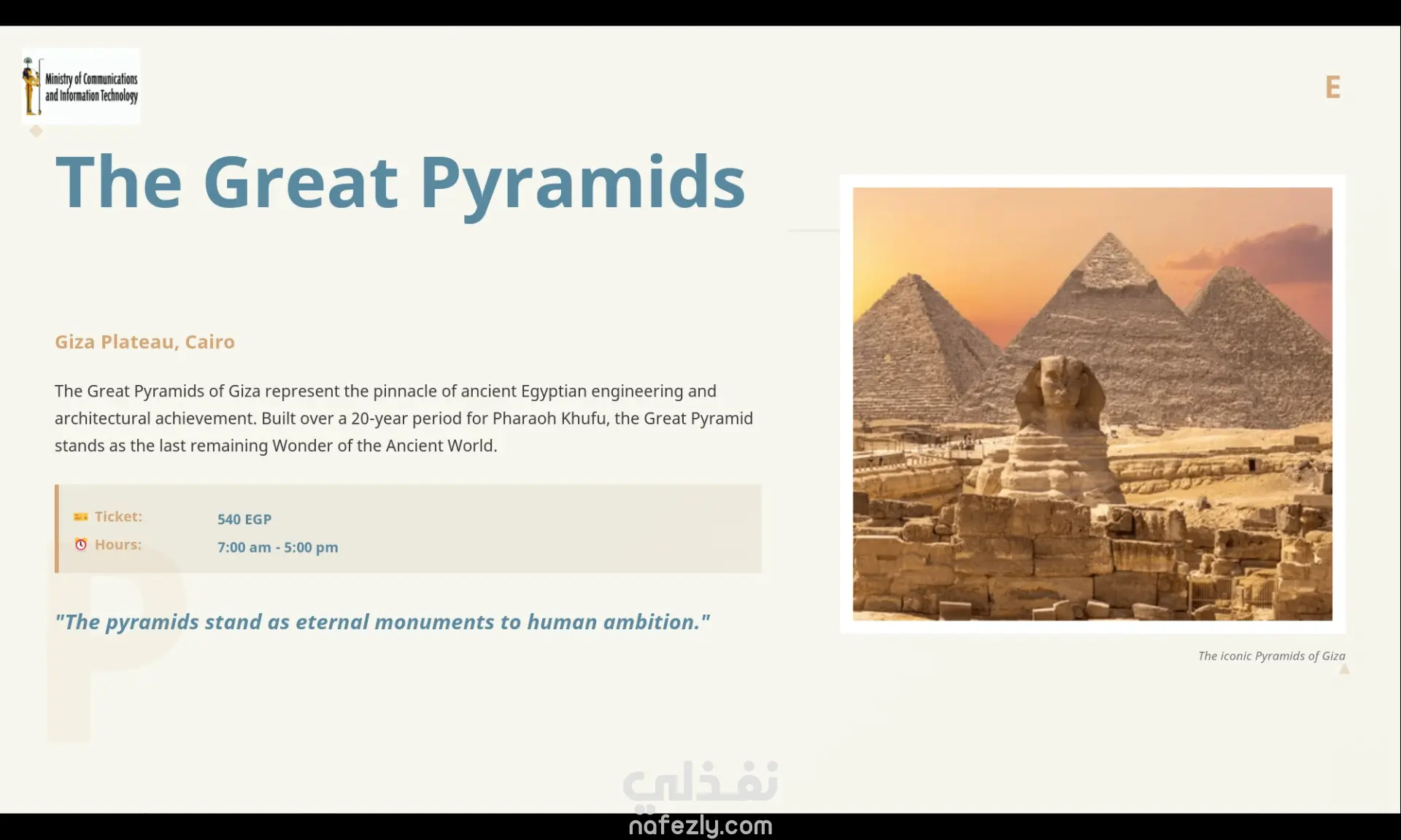 عمل عرض تقديمي احترافي عن بعض معالم مصر الأثرية لمشروع تخرج احد الطلاب