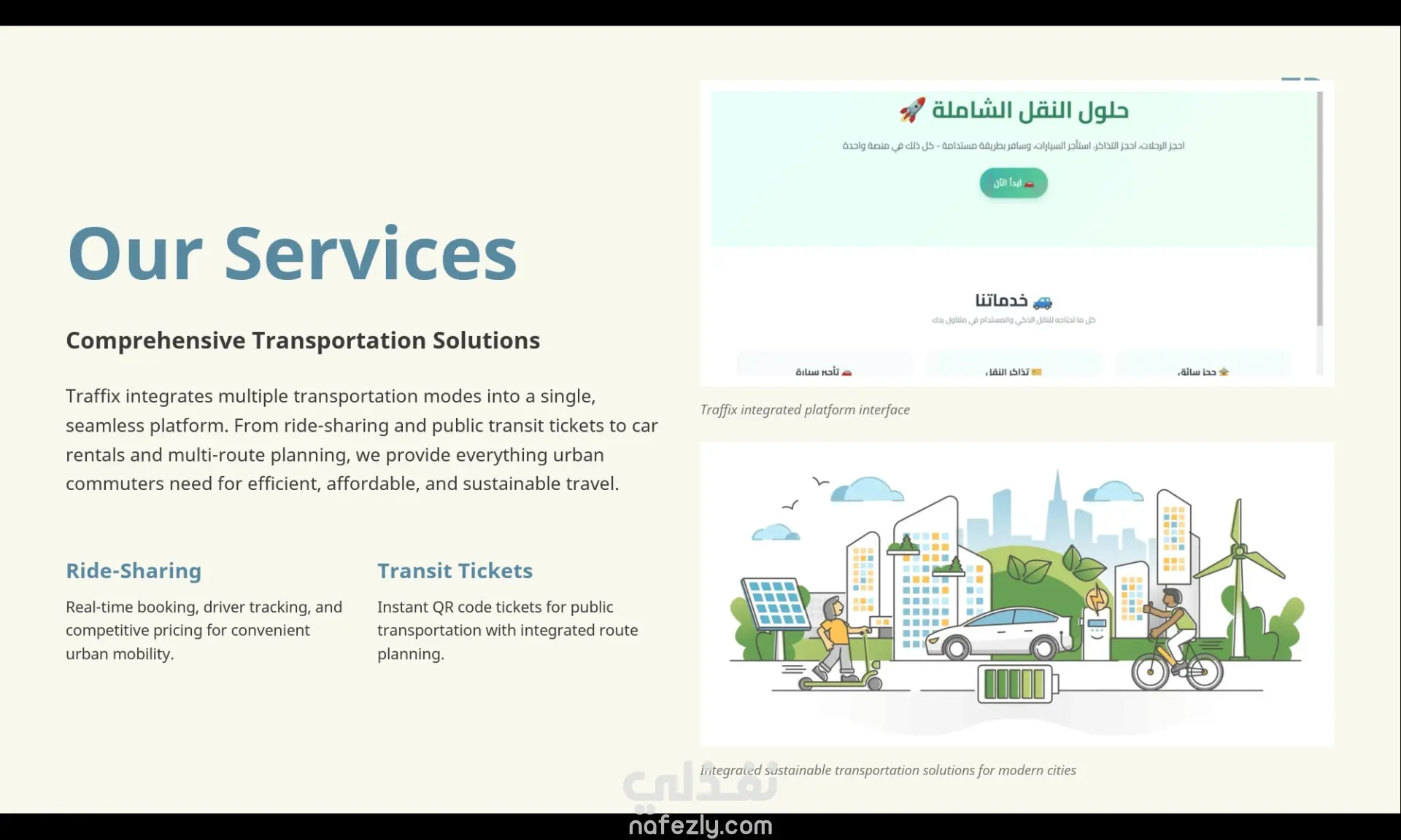 عرض تقديمي لمشروع تخرج بعنوان "إنشاء موقع إلكتروني لخدمات النقل والمواصلات".
