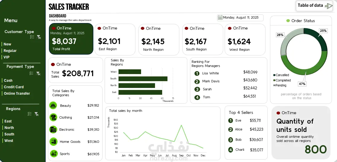 أقدّم خدمة تصميم لوحات تحكم تفاعلية باستخدام Microsoft Excel لعرض وتحليل بيانات المبيعات بشكل احترافي وسهل الفهم. يشمل هذا المشروع رسومًا بيانية ديناميكية للمبيعات والأرباح حسب المنطقة، وحالة الطلبات، وأفضل الأداء، وتتبع الأداء الشهري. كما توفر الفلاتر والتصاميم القابلة للتخصيص بالكامل تمكين الشركات من اتخاذ قرارات مبنية على البيانات بوضوح وثقة.